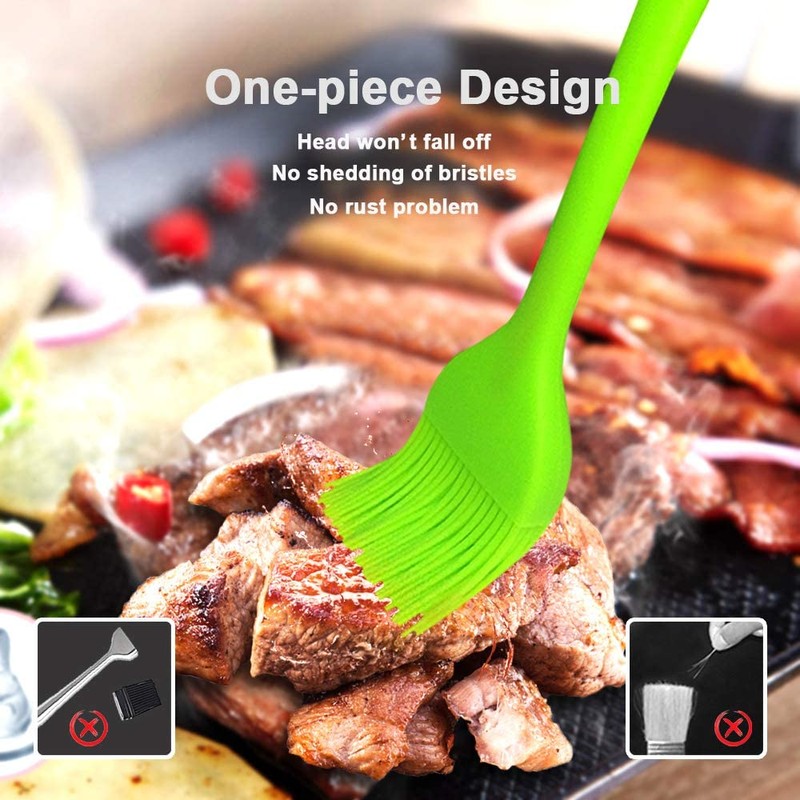 1.Цельный дизайн и технология сердечника из нержавеющей стали-Благодаря цельной конструкции силиконовые щетинки не ломаются и не линяют пищу, в отличие от других щетинных щеток. Никакие бактерии не будут застревать в силиконовых щетках для набивки, и ваша еда будет безопасна. Ручка изготовлена из прочной внутренней сердцевины из нержавеющей стали, что увеличивает ее долговечность и продолжает работать день за днем.