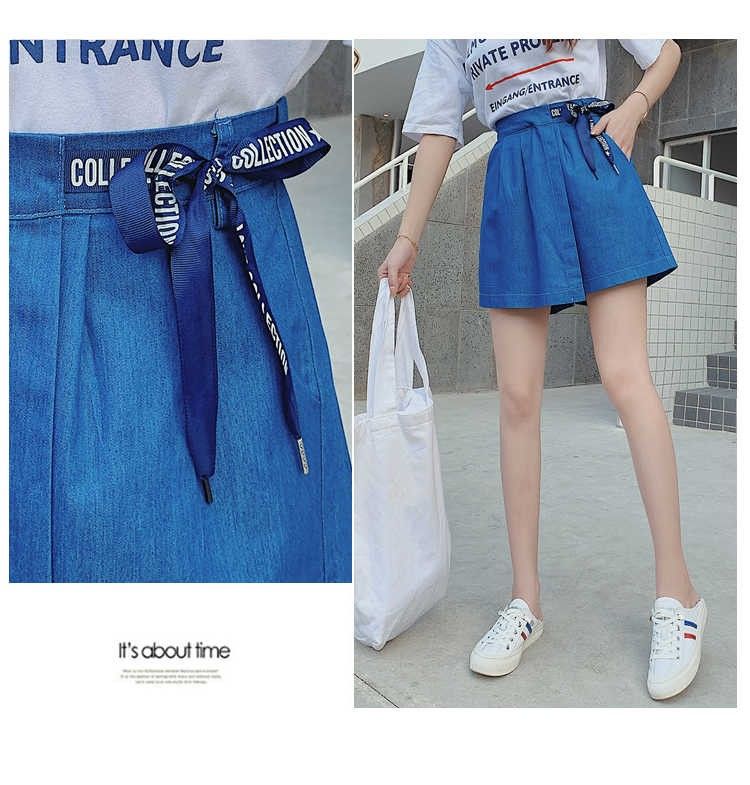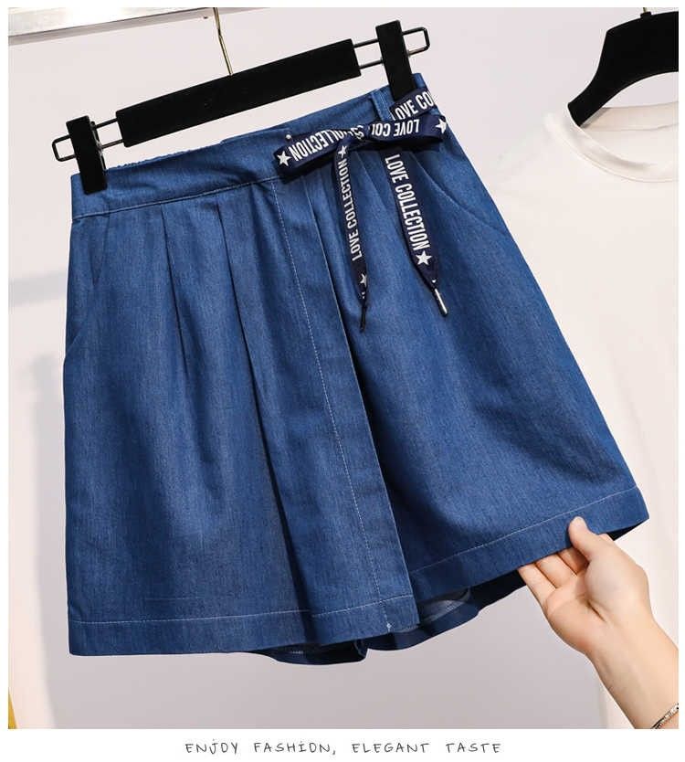 Шорты Женские Джинсовые Из Тенсел, Элегантные Модные Свободные Штаны Из Денима С Эластичным Поясом, В Стиле Оверсайз С Завязками С Широкими Штанинами Размера Плюс, На Лето