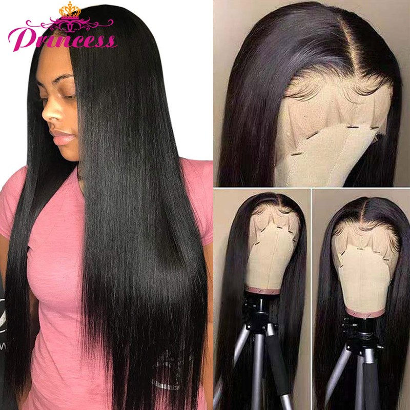 Парик принцессы 13x 4/13x 6 из человеческих волос на сетке спереди, парик с предварительно выщипанной застежкой 4x4, парик 8-34 дюйма бразильский прямой парик на сетке спереди, 180% Реми