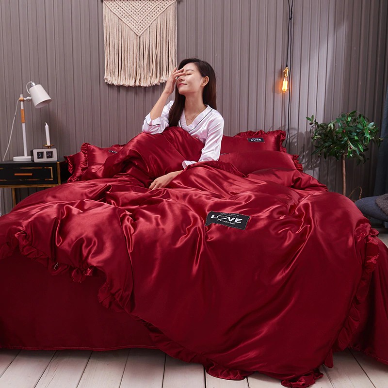 Комплект постельного белья, кружевной, роскошный пододеяльник односпальный двуспальный размер King размер из натурального шелкового атласа x 240 пододеяльник для пары цвет белый серый, красный