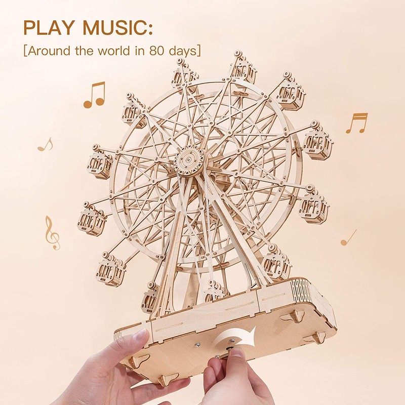 После завершения сборки, поверните часы, колесо обозрения будет медленно вращаться, и играть музыку в то же время, полный веселья и творчества