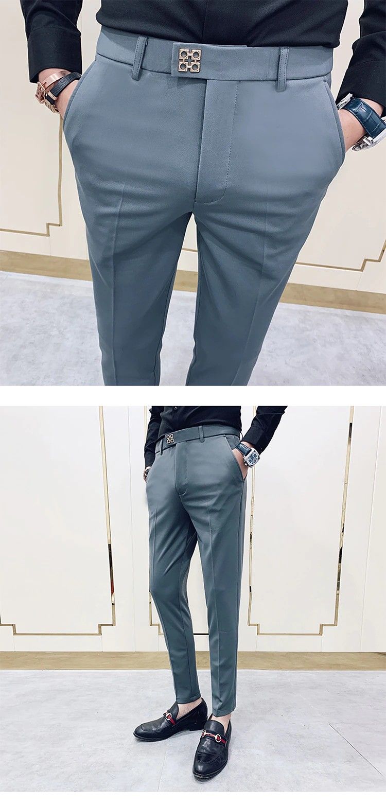 Мужские Облегающие Брюки До Щиколотки, Черные Или Серые Повседневные Брюки В Корейском Стиле, Одежда Для Улицы, Весна Новейшие