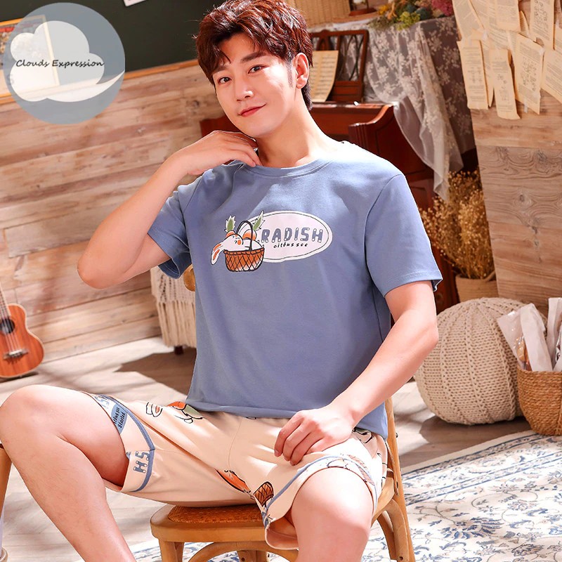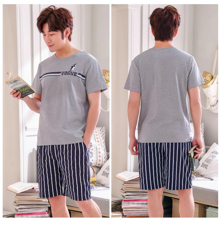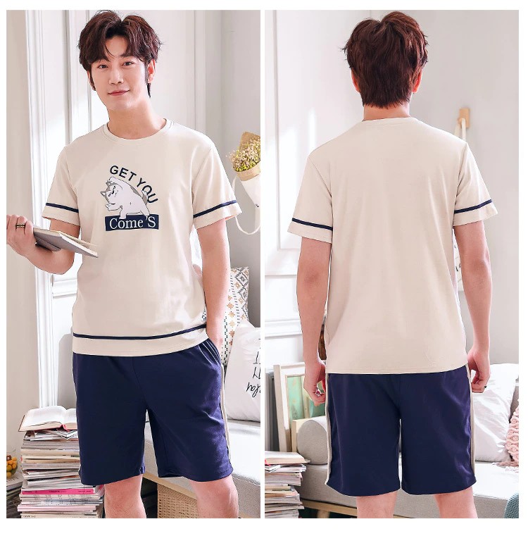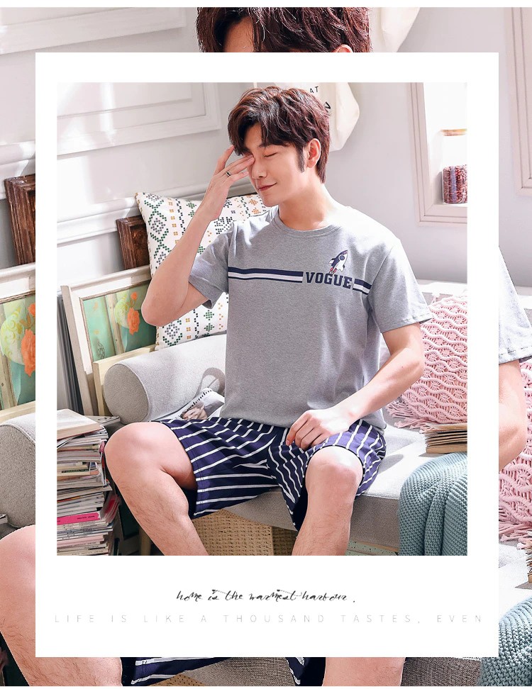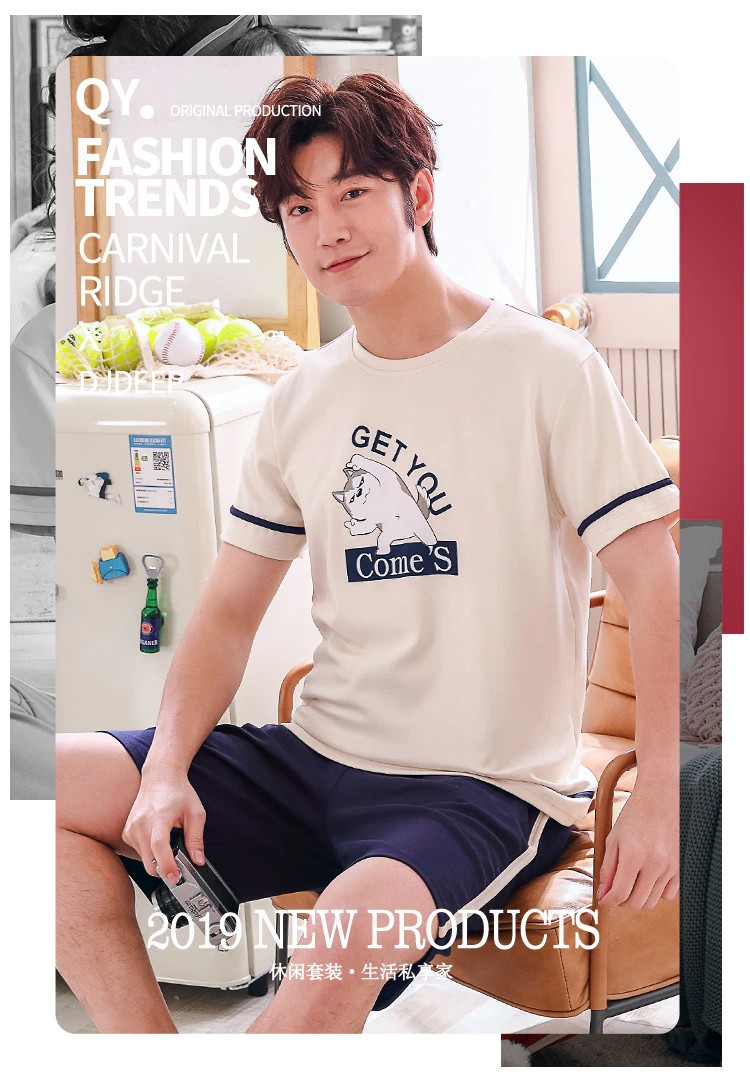 Летняя трикотажная Хлопковая мужская пижама с коротким рукавом, мужской пижамный комплект, Мужская одежда для сна домашняя одежда, размер xXXXL