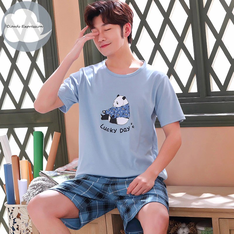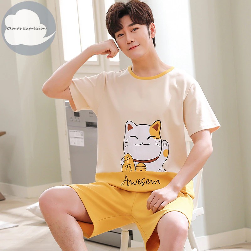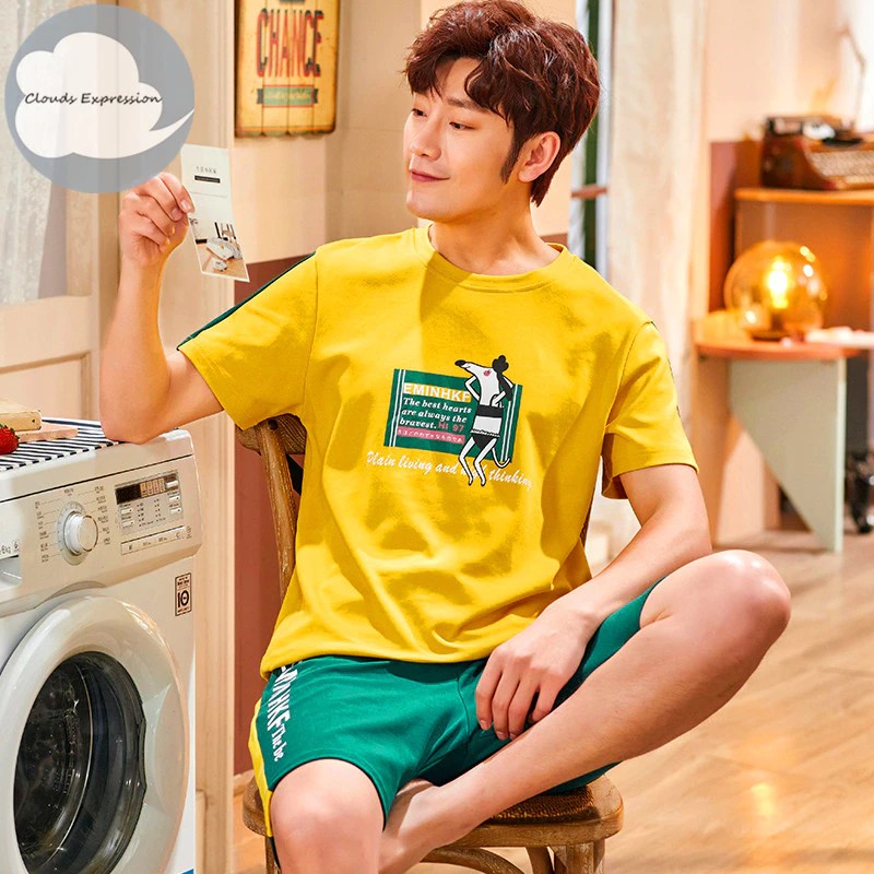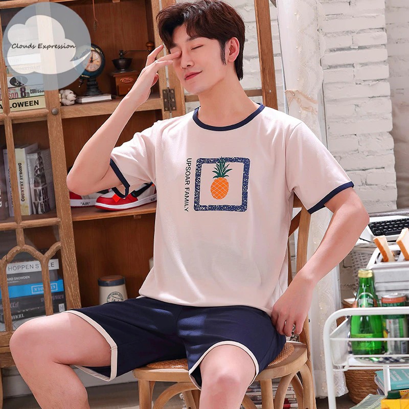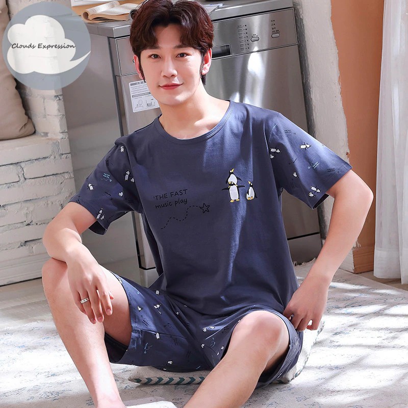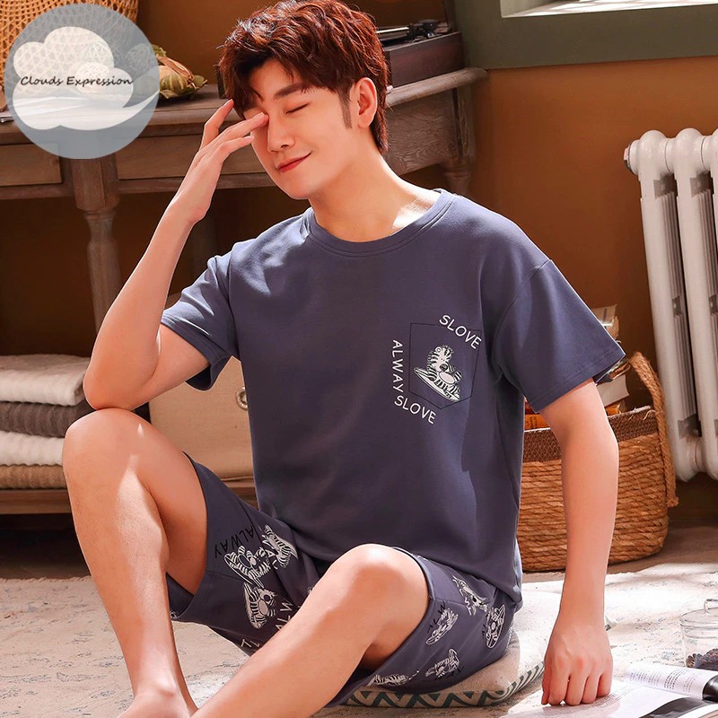 Летняя трикотажная Хлопковая мужская пижама с коротким рукавом, мужской пижамный комплект, Мужская одежда для сна домашняя одежда, размер xXXXL
