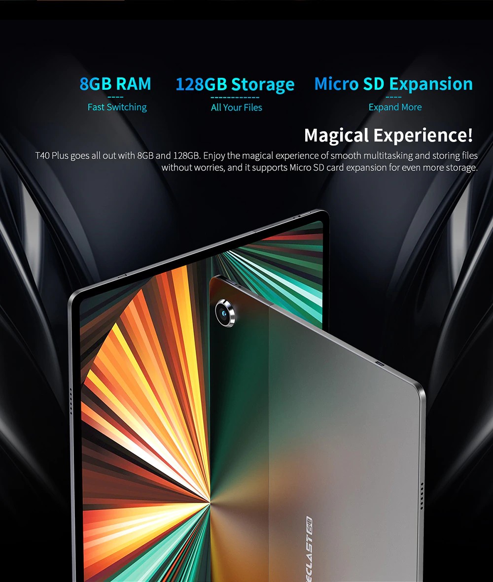 Teclast T40 Plus планшет, экран 10, 4 дюймов 8 Гб ОЗУ 128 Гб ПЗУ Восьмиядерный, Android 11