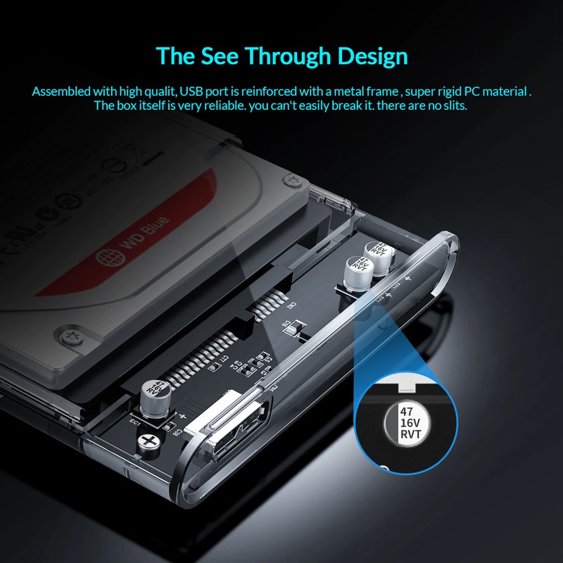 * Это высококачественный прозрачный корпус SSD / HDD, разработанный и изготовленный ORICO. Вы можете увидеть внутреннюю структуру и состояние жесткого диска с первого взгляда.