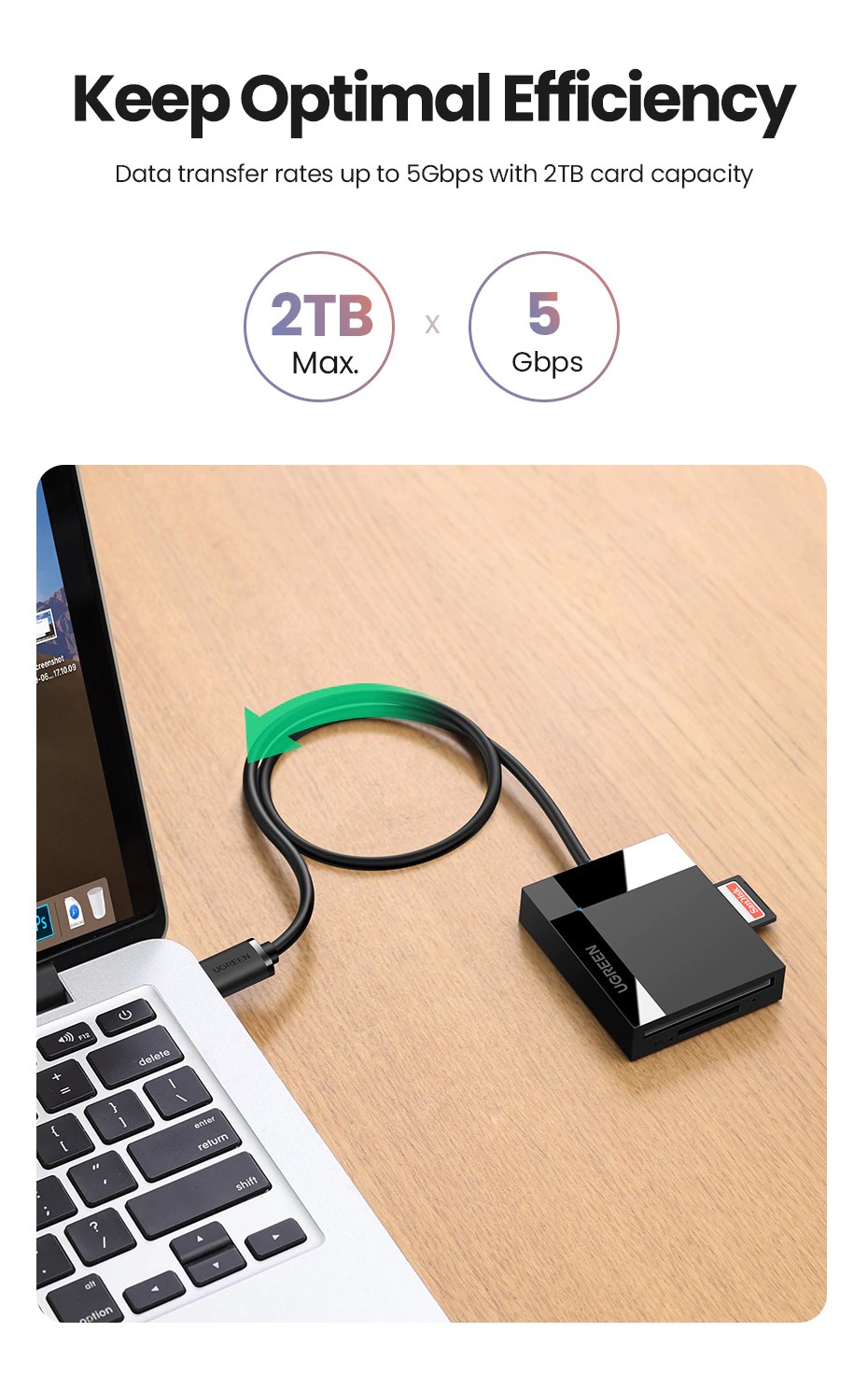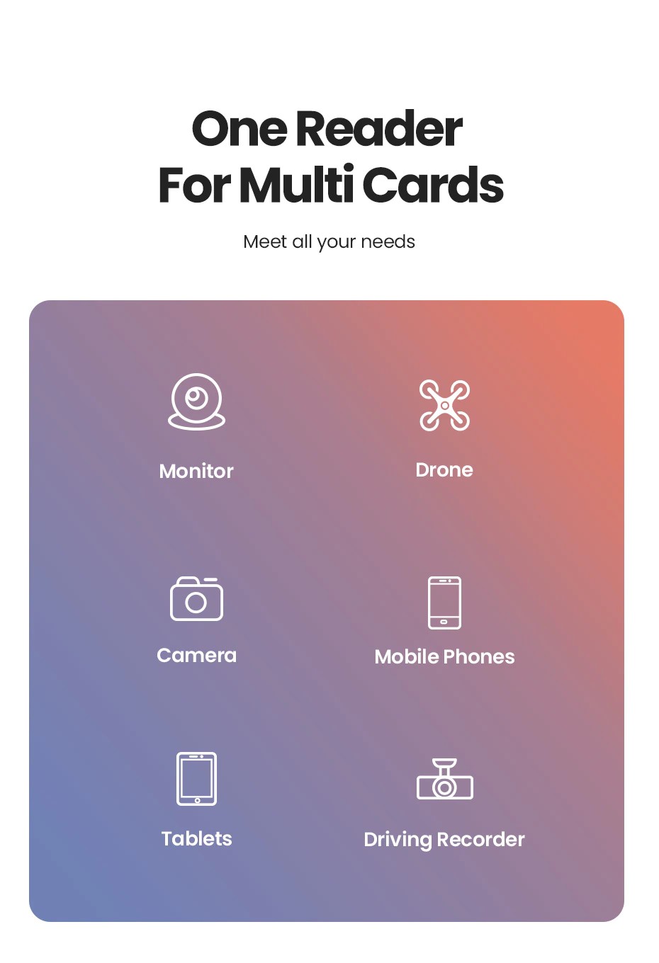 В отличие от других адаптеров для карт с одним считыванием, устройство считывания карт Ugreen позволяет одновременно считывать 4 карты и позволяет вам отвлекаться от проблем с постоянным отключением и повторным подключением.