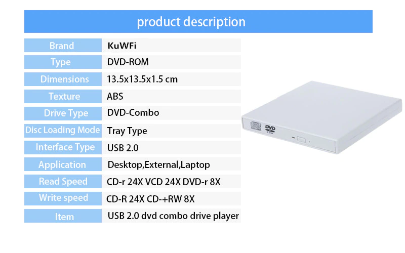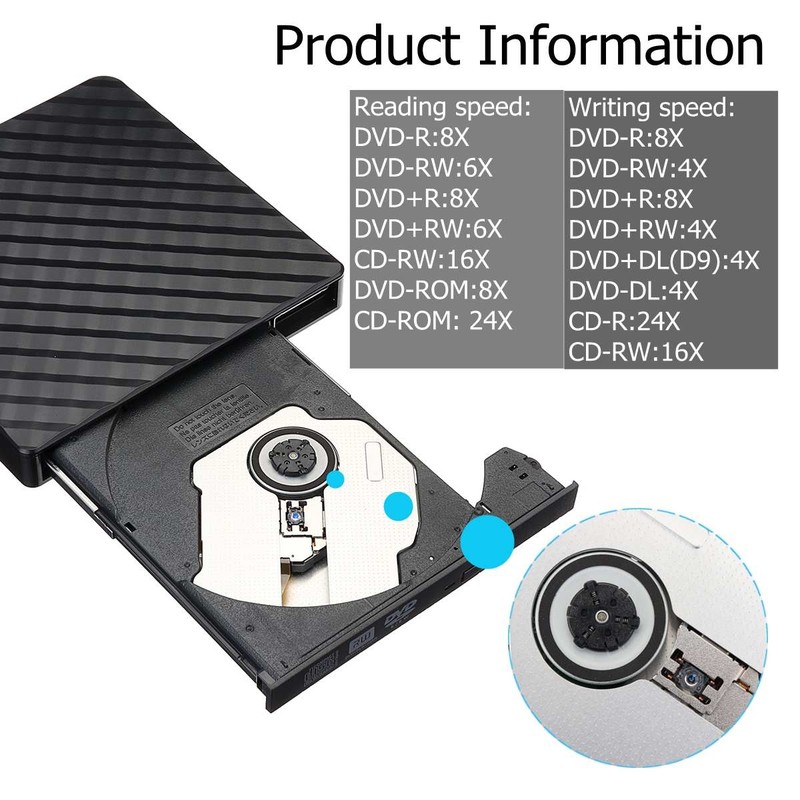 -- Поддержка формата CD: DVD-ROM, DVD-R, DVD + R, DVD-RW, DVD-R DLCDA, CD-ROM, CD-R, VCD, SVCD, CD-RW.