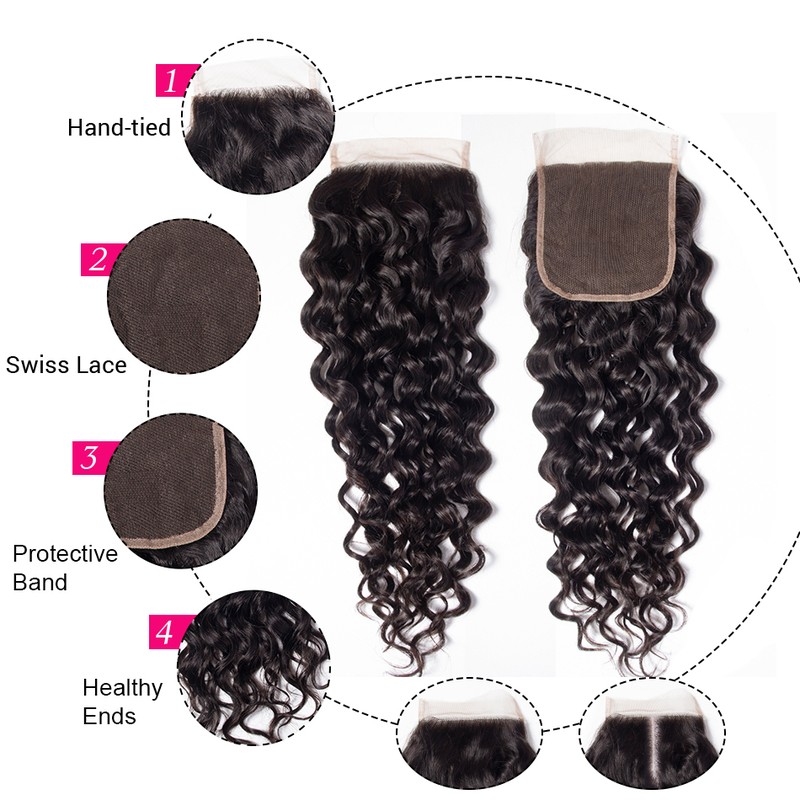 Пряди бразильских волнистых человеческих волос Реми с застежкой, 3 пряди ди с кружевной застежкой 4x4