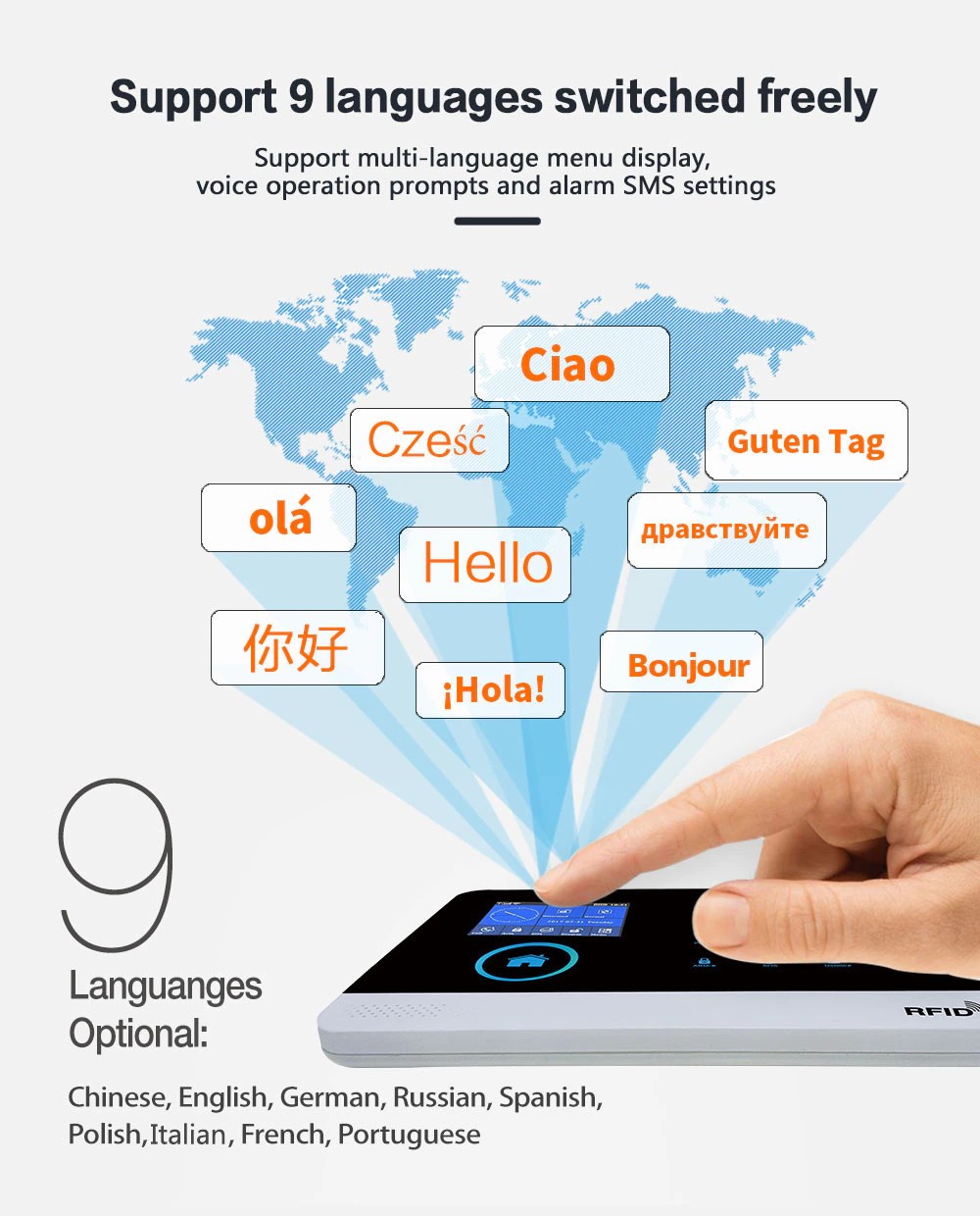 1. Встроенный 9 языков (испанский, французский, английский, русский, итальянский, португальский, немецкий, польский, китайский), может свободно переключаться