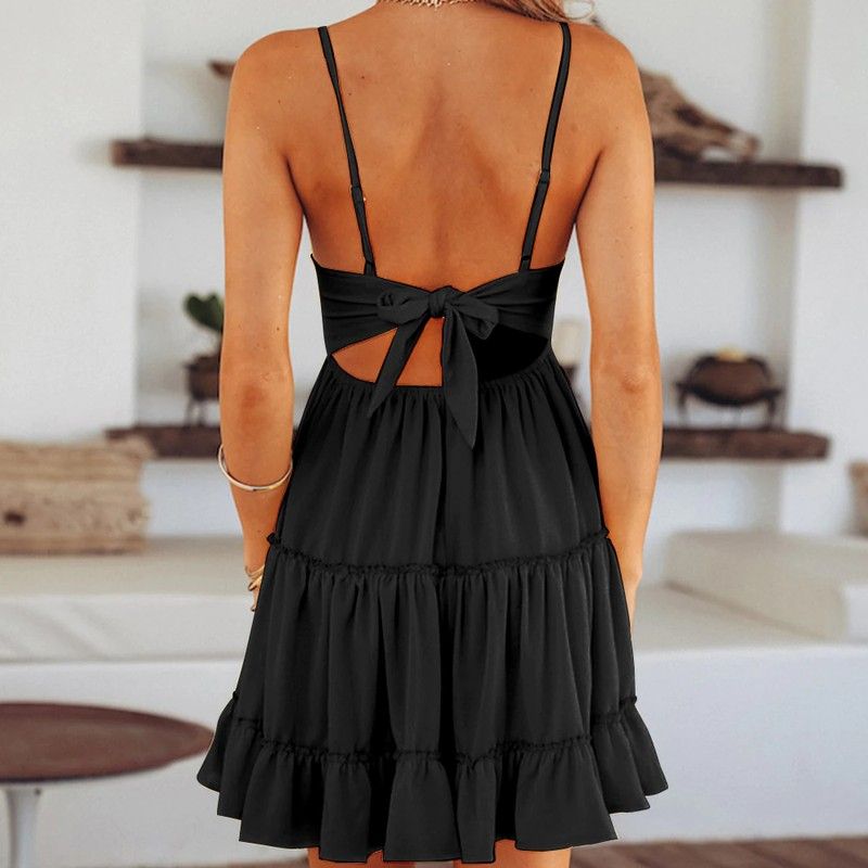 Платье Женское Кружевное В Стиле Бохо, Пикантный Пляжный Бандажный Вечерний Мини Сарафан На Бретелях С V-Образным Вырезом, С Открытой Спиной Вечерние С Оборками Белый, На Лето
