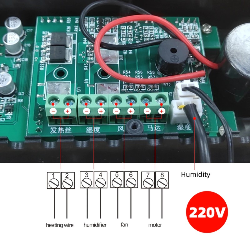 Нормальный рабочий диапазон влажности (50%-70%), ниже 40%, выше 75%, сигнализация, влажность рабочей среды не превышает 70%, высокая и низкая влажность за короткое время не повлияет на вылупление