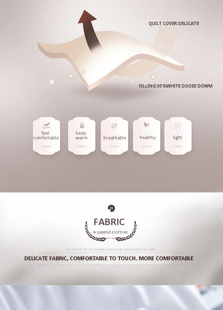 Apressado Consolador Inverno Acolchoado Colchas Cobertor 95% Ganso Branco Para Baixo Edredon Colcha 100% Algodão Tamanho Rei Gêmeo Capa Rainha Ponderada