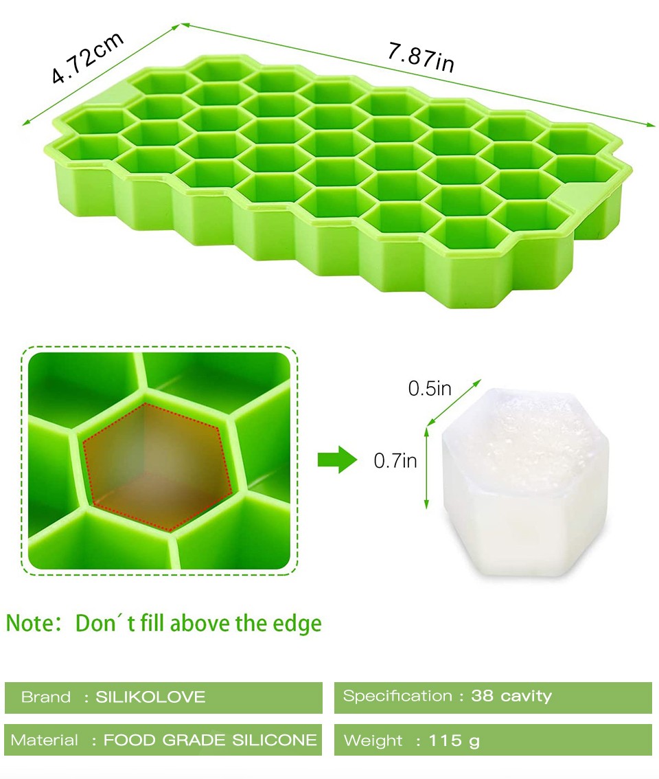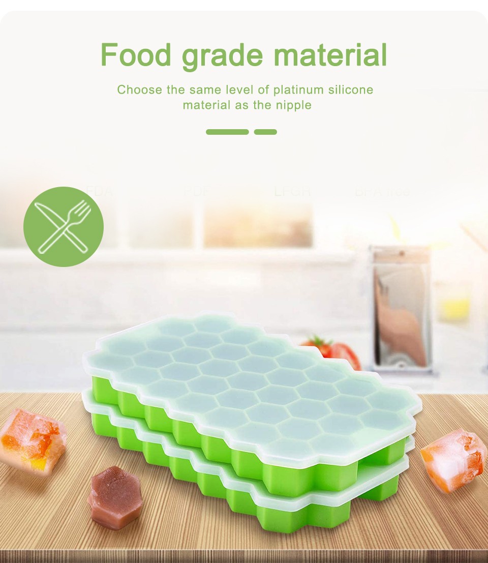 • Fabricante De Gelo Livre Bpa Do Molde Do Cubo De Gelo Silicone Reusável Das Bandejas Cubo Gelo Do Favo Mel De Silikolove Com Tampas Removíveis