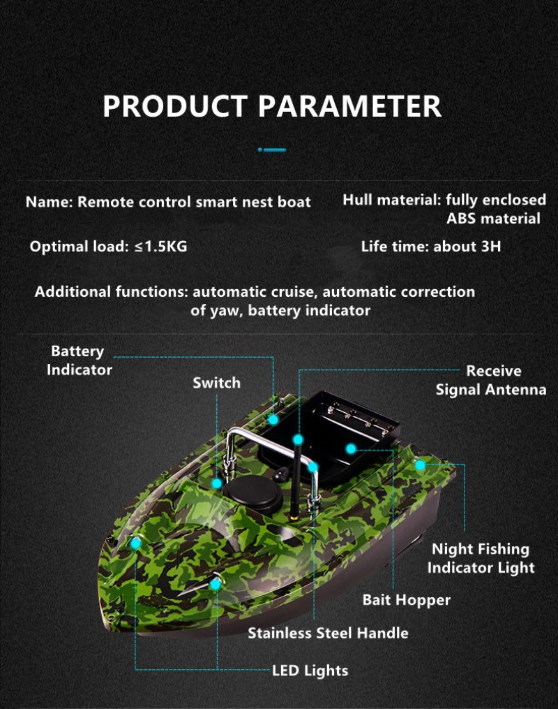 Smart Feste Geschwindigkeit Cruise Radio Fernbedienung Angeln Köder Boot 1, 5 Kg 500M Dual Nacht Licht Köder Angeln Rc Köder Boot Angeln