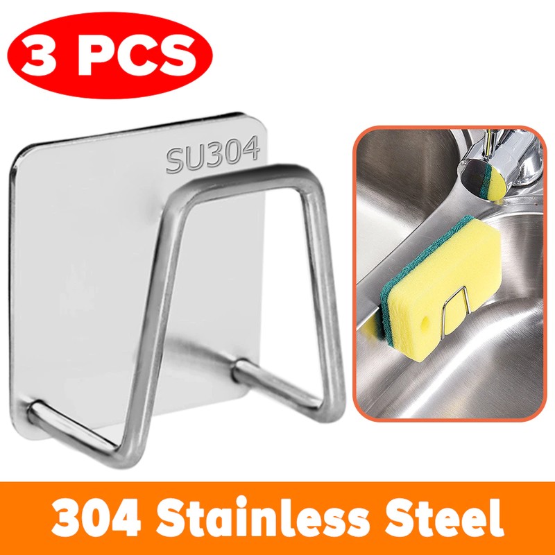 Cozinha De Aço Inoxidável Sponges Titular Dreno Secagem Rack Auto Adesivo Da Pia Ganchos Cozinha Cabide Acessórios Organizador Armazenamento