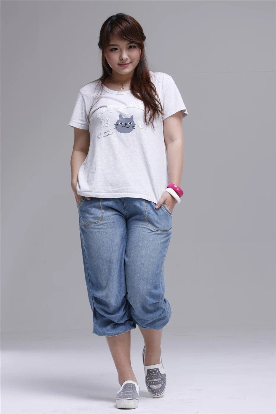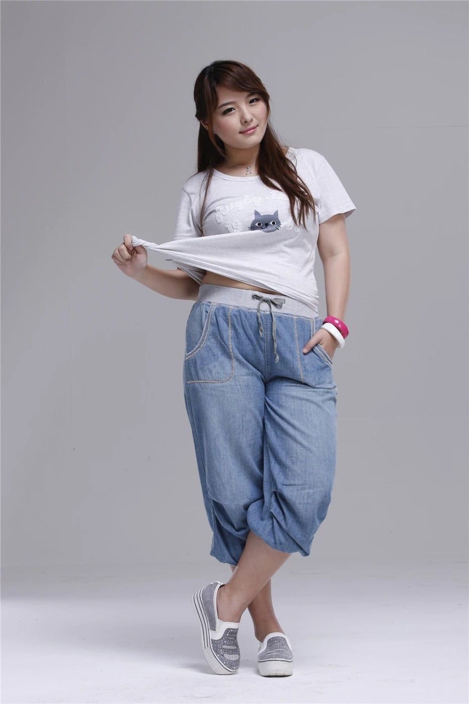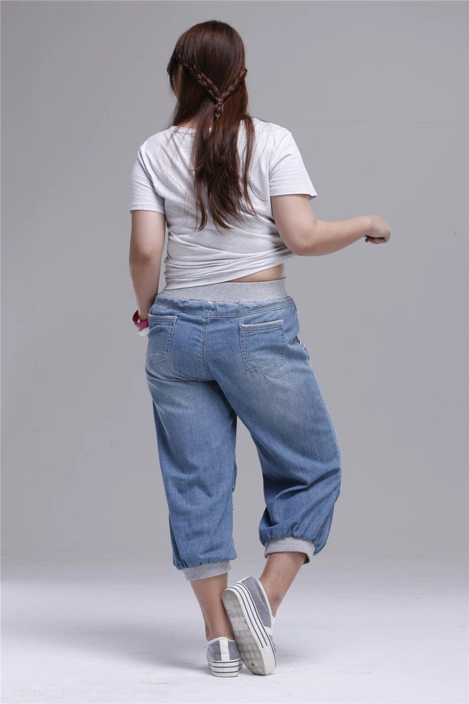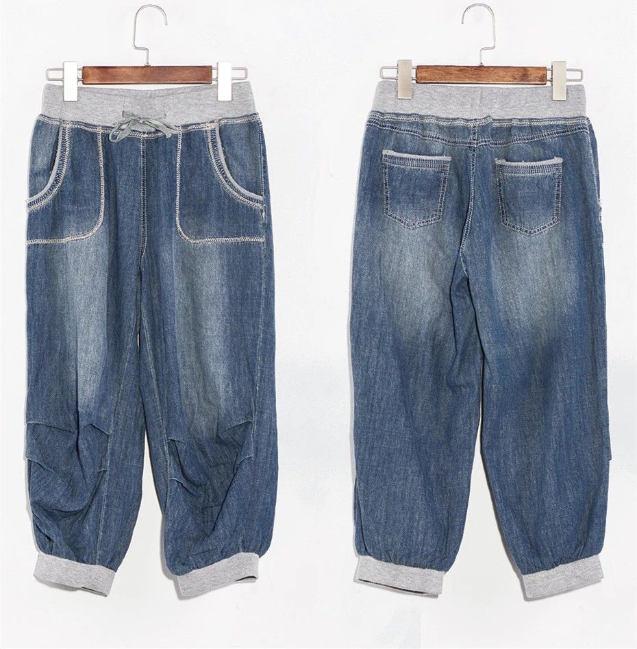 الصيف النساء الجينز عالية الخصر حجم كبير الدنيم Capris الإناث فضفاض سراويلي حريمي 4Xl 5Xl 6Xl 8Xl