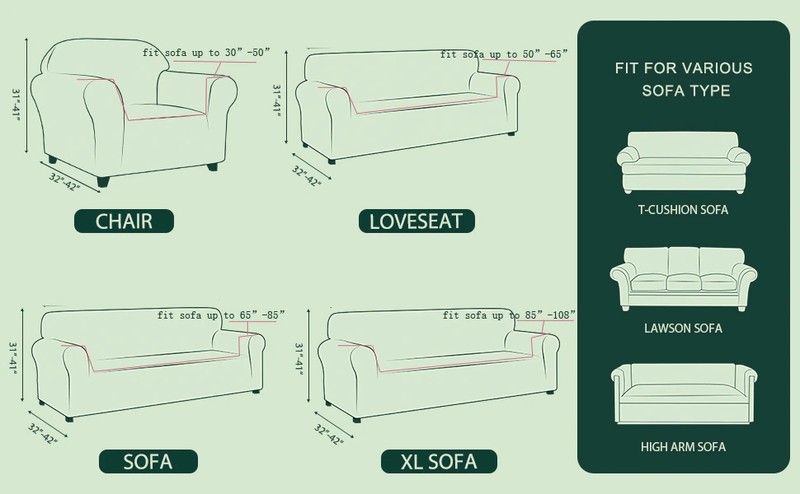 Fodera divano (di Grandi Dimensioni):65 "-85" di lunghezza, 32 "-42" di larghezza, 31 "-41" di altezza.