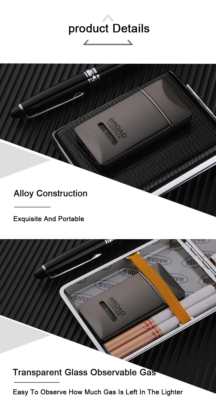 Taschenlampe Turbo Winddicht Rohr Leichter Ultra-Dünne Kompakte Metall Lange Streifen Jet Gerade Feuer Gas Butan Zigaretten Tasche Feuerzeuge