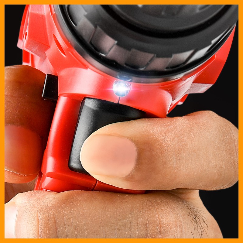 Elektrikli matkap çalışırken, matkap ucu döner ve gerçek bir aracı seven ayarlanabilir ışık ile.