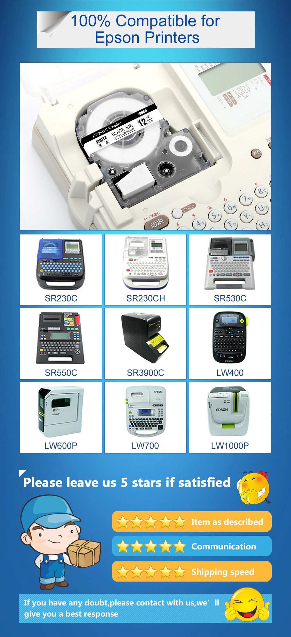 1 Adet Etiket Bantları Ss12Kw Için Uyumlu Lw-300 Lw-400 Lw-600P Lw-700 Lc-4Wbn9 Yazıcı (12Mm * 8M Beyaz Siyah) Etiket Üreticisi