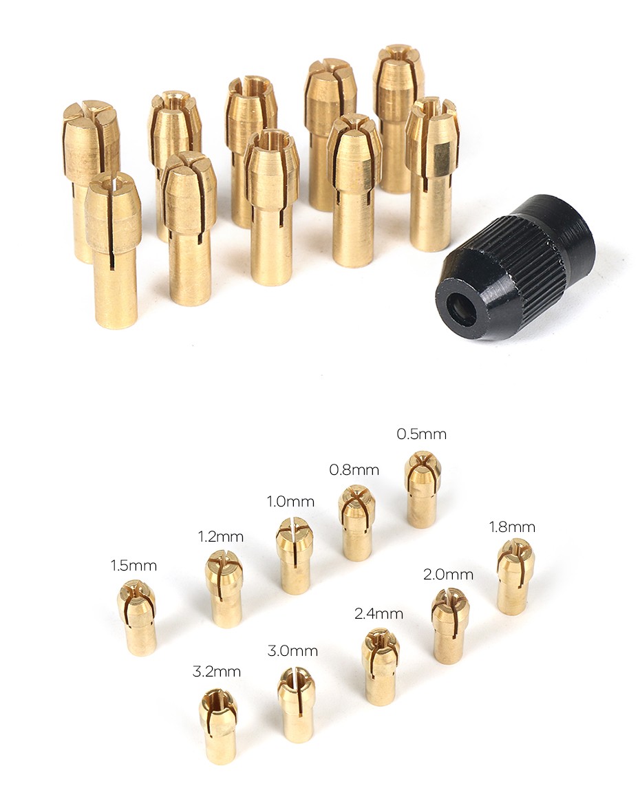 Pirinç Collet Chuck 0.5/0.8/1.0/1.2/1.6/1.8/2.0/2.2/2.4/3.0/3.2mm + M8 * 0.75 Chuck Dremel döner araçları Dremel aksesuarları uyar