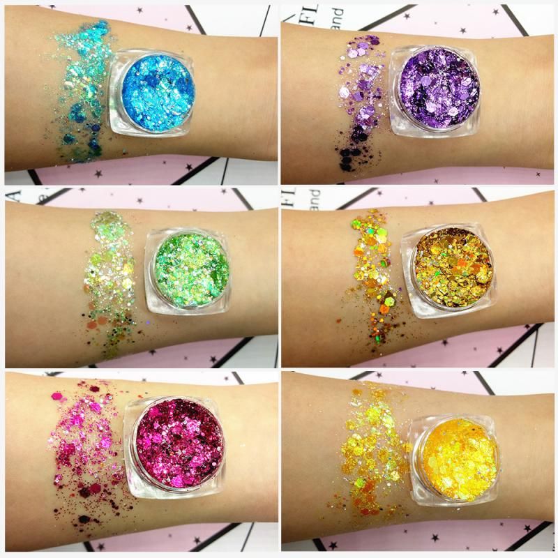 18 Renk Mermaid Sequins Jel Holografik Sequins Saç Vücut Yüz Glitter Jel Sanat Gevşek Sequins Pırıltılı Elmas Göz Farı Tslm1