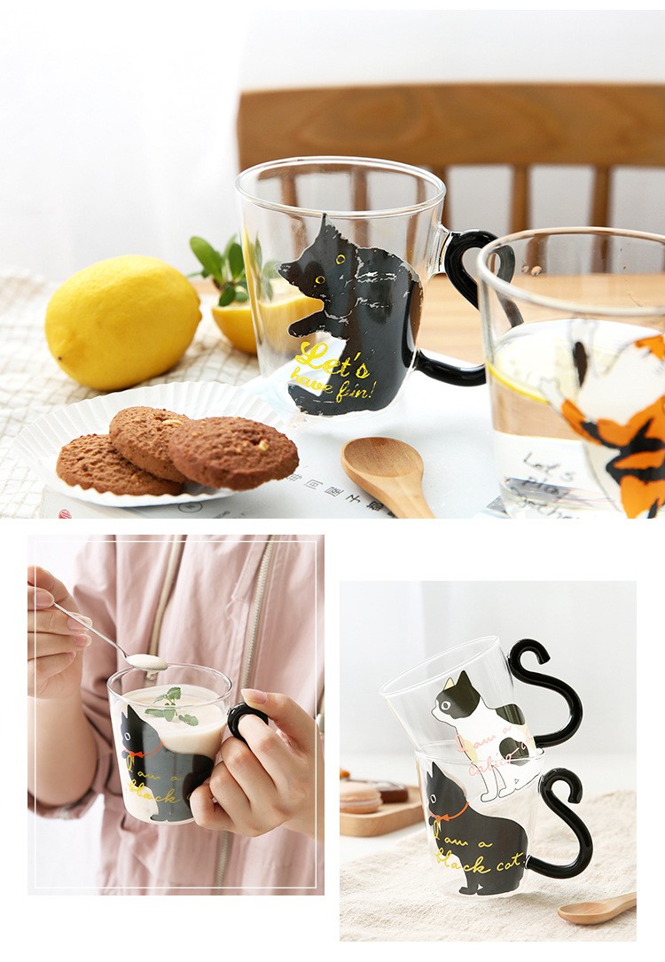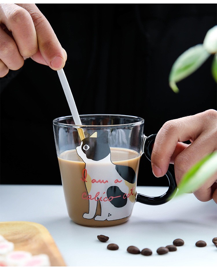 1 Adet Sevimli Kedi Cam Suyu Kahve Fincanı Süt Çay Kahve Bardağı Kupa Kedi Kuyruk Kolu Kedi Sevgililer Günü Sevgilisi Hediyeler Paslanmaz Kaşık