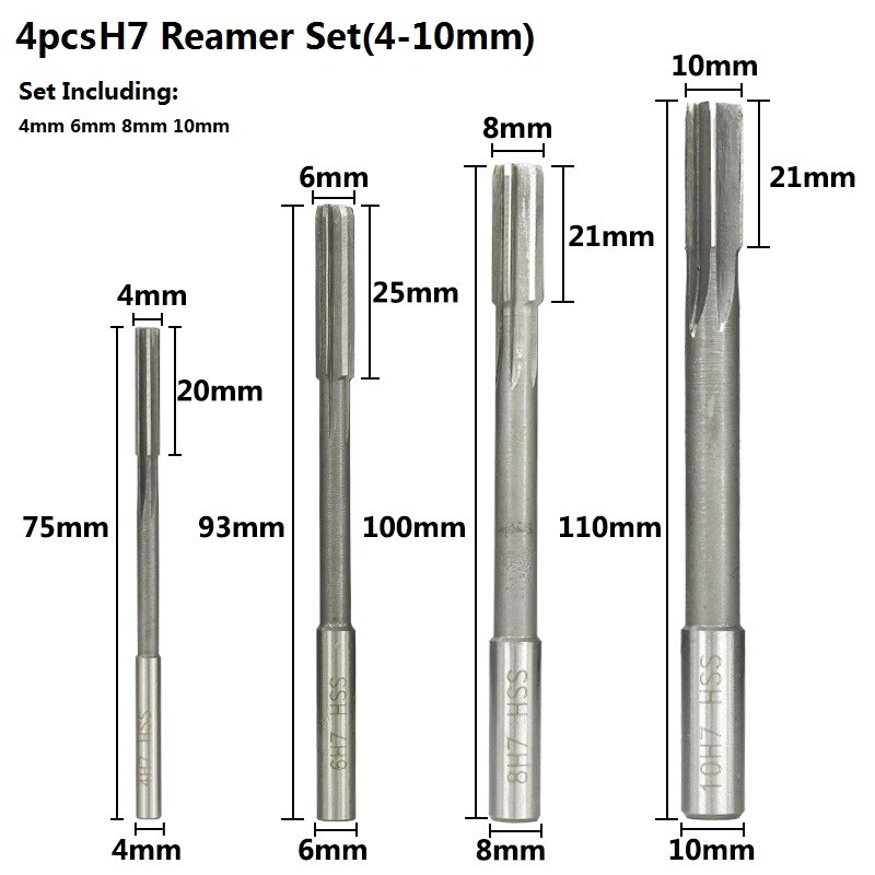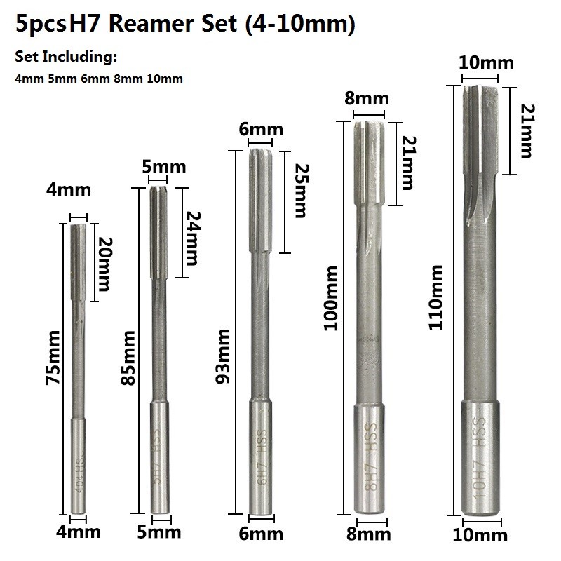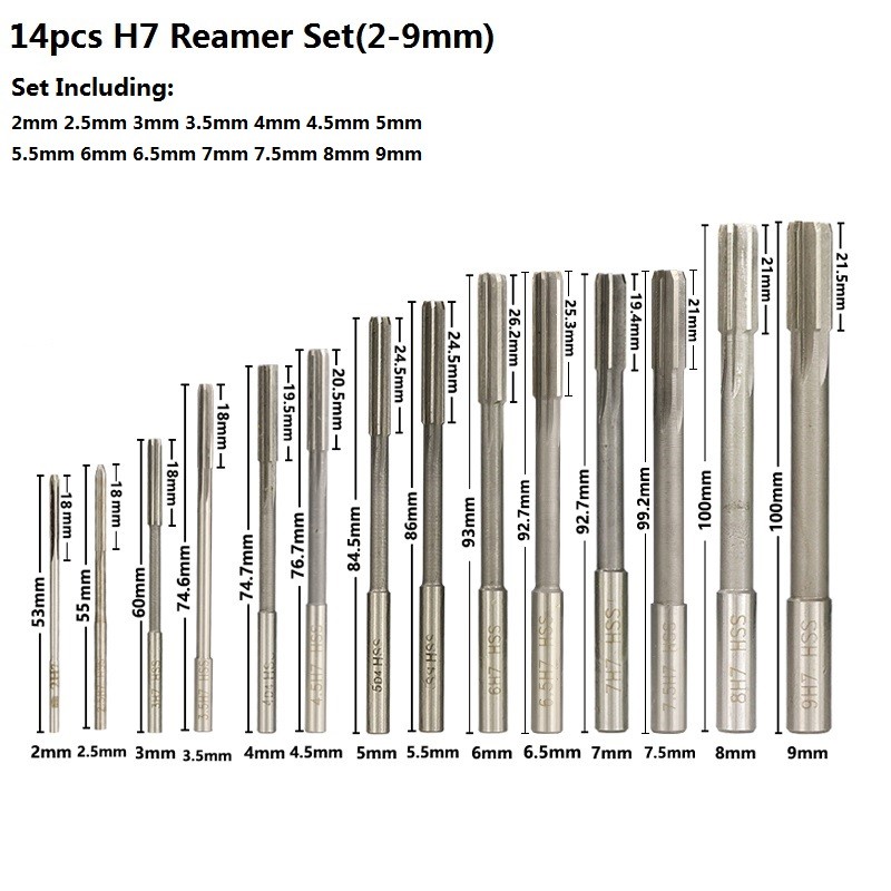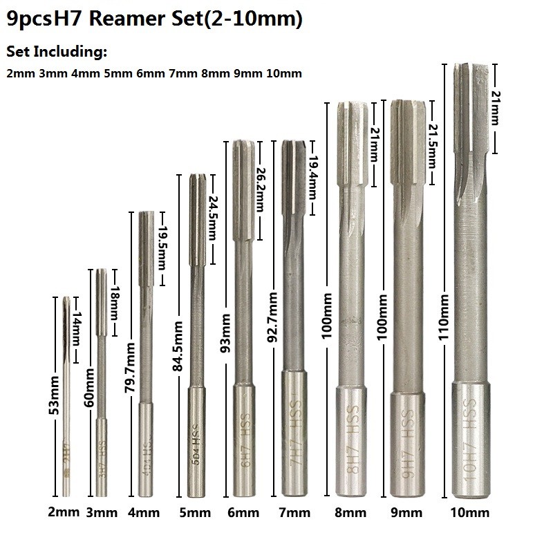 2.0-12mm HSS H7 makine rayba seti düz şaft freze raybalar seti Chucking makinesi kesici aracı