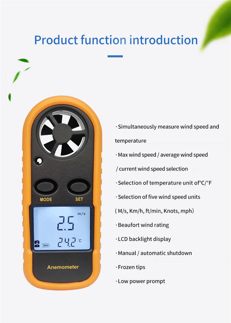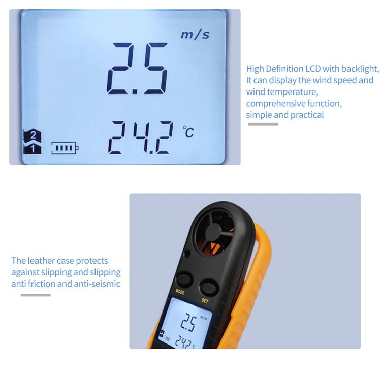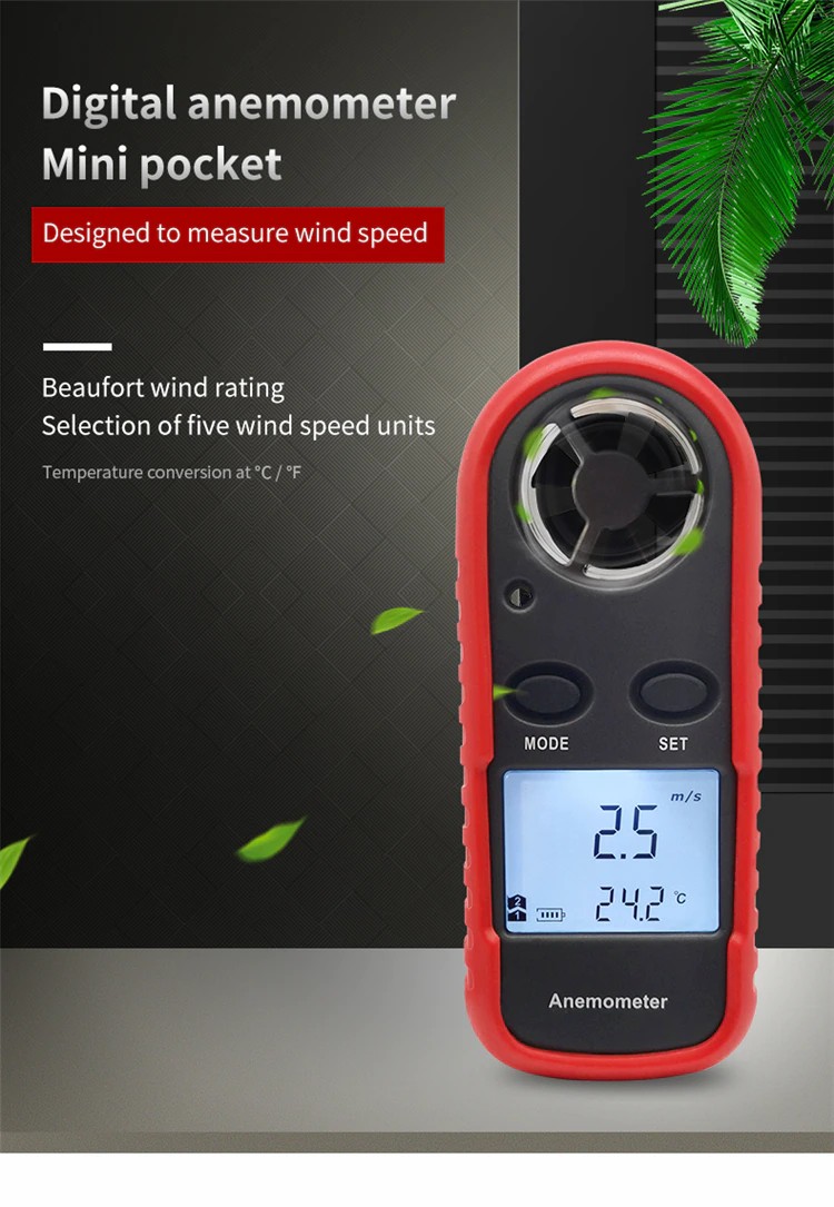 2-in-1 Mini anemometre dijital yüksek hassasiyetli pervane rüzgar hızı hacmi sıcaklık test açık ölçüm windsurf hava