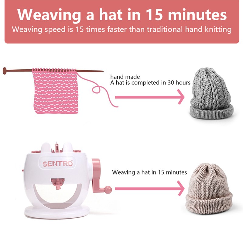 Dokuma hızı geleneksel el örgü yönteminden on kat daha hızlıdır. Yaklaşık 30 saat boyunca bir şapka örmek. Bir dokuma makine yaklaşık 15 dakika boyunca bir şapka dokuma için kullanılır. Kompakt gövde, taşıması ve kullanımı kolay, dokuma etkisi iyidir