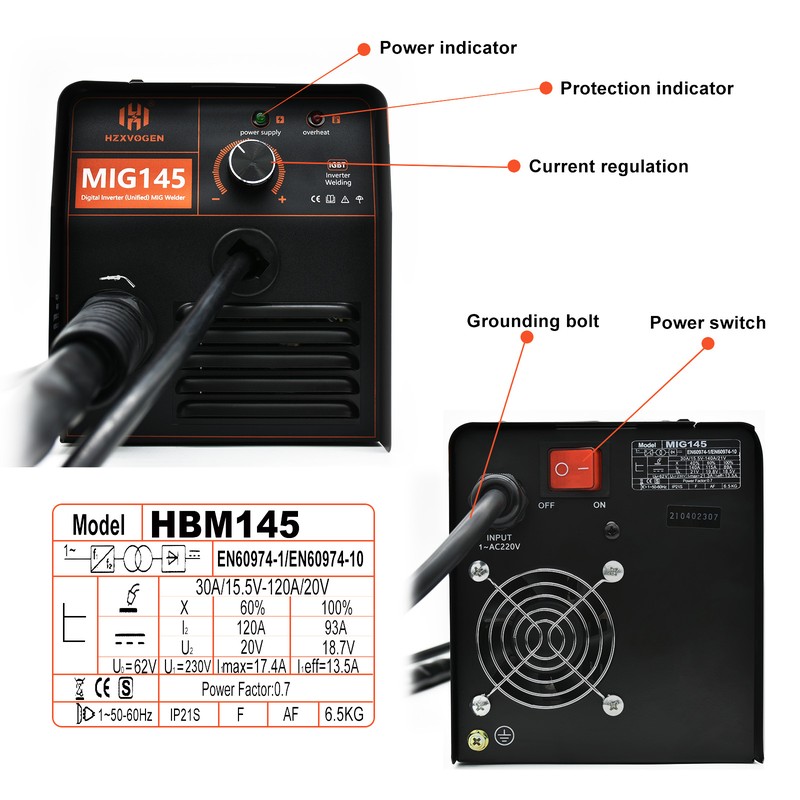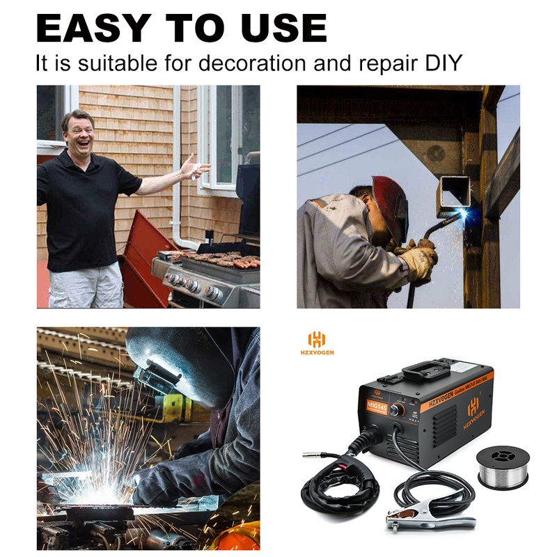 220V Hzxvogen Mig145 Yarı Otomatik Kaynak Makinesi̇ Mig Kaynakçı Ile 1Kg 0.8Mm Akı Çekirdek 0.4-4Mm Gazsız Demir Lehimleme