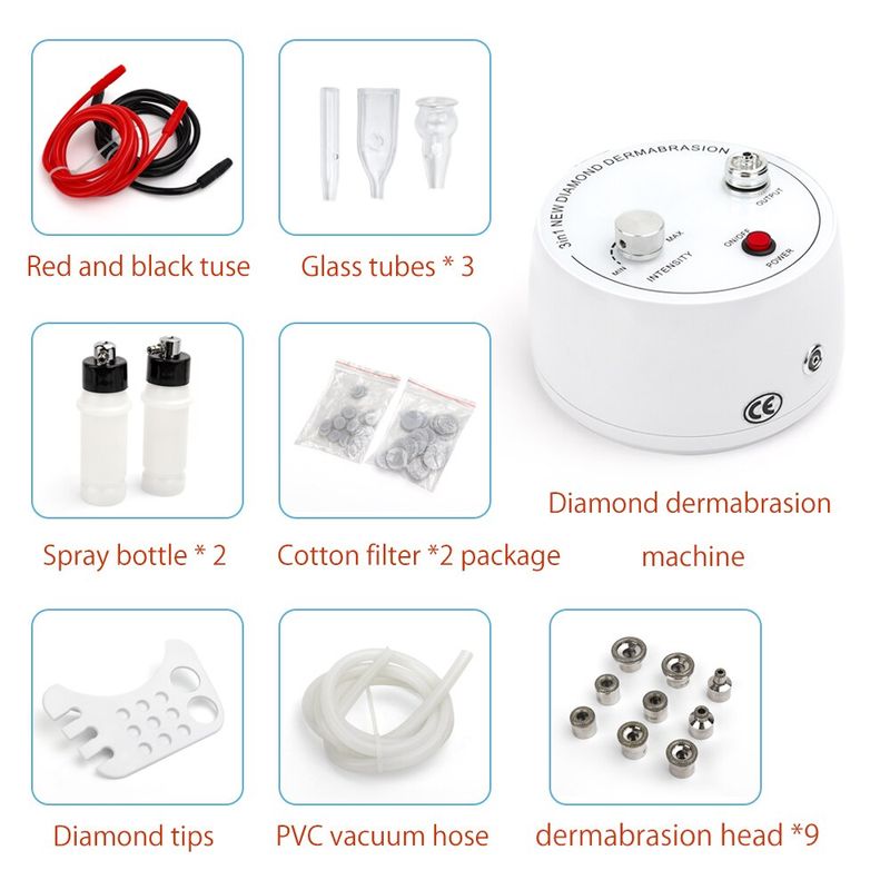 ●Mikrodermabrazyon, steril elmas kafaları kullanarak ölü deri hücrelerinin üst tabakasını nazikçe peeling veya polishesaway eden non-invaziv, cilt yenileme prosedürüdür. Daha sonra vakum, filtrasyon sisteminde kir veya ölü cildi kapatacak. Cilt tonunu, dokusunu ve elastikiyetini iyileştirmeye yardımcı olur ve yaşlılık lekelerinin, ince çizgilerin ve pigmentasyonun görünümünü azaltır.
