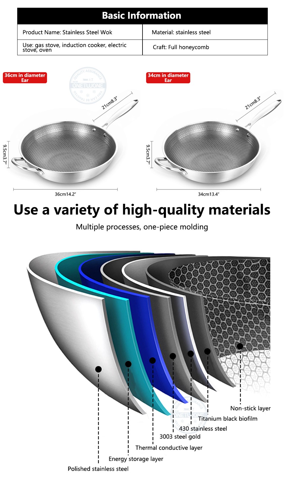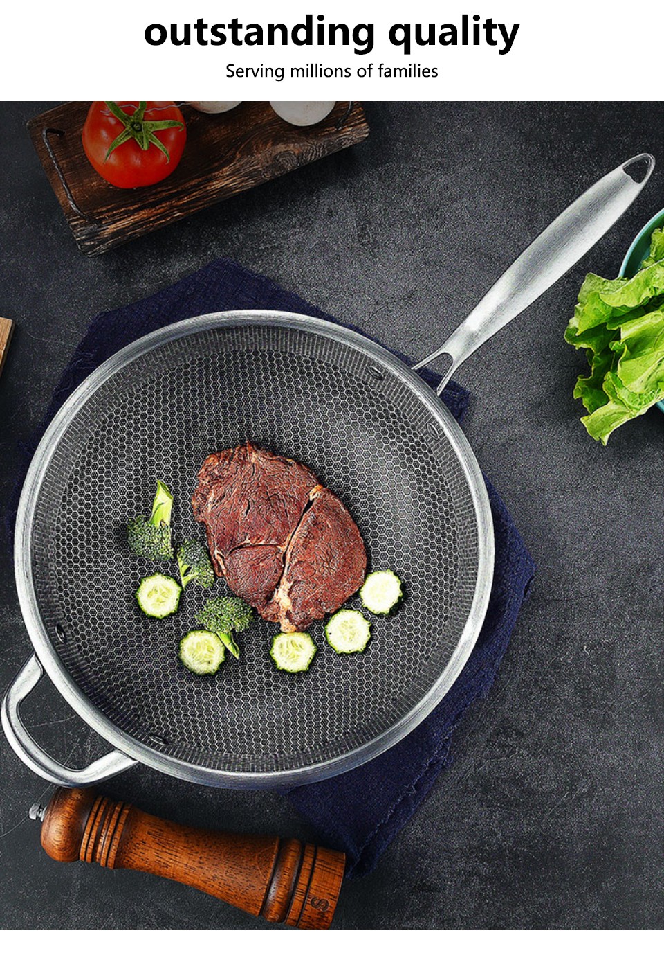 5. Bu ürün hassas ve perçin takviyesi ile hazırlanmış yüksek kaliteli paslanmaz çelik petek dokulu wok. Bu çok yönlü bir ev pişirme wok. Aile ve arkadaşlara hediye vermek için çok uygundur, kesinlikle çok mutlu olacaklar.