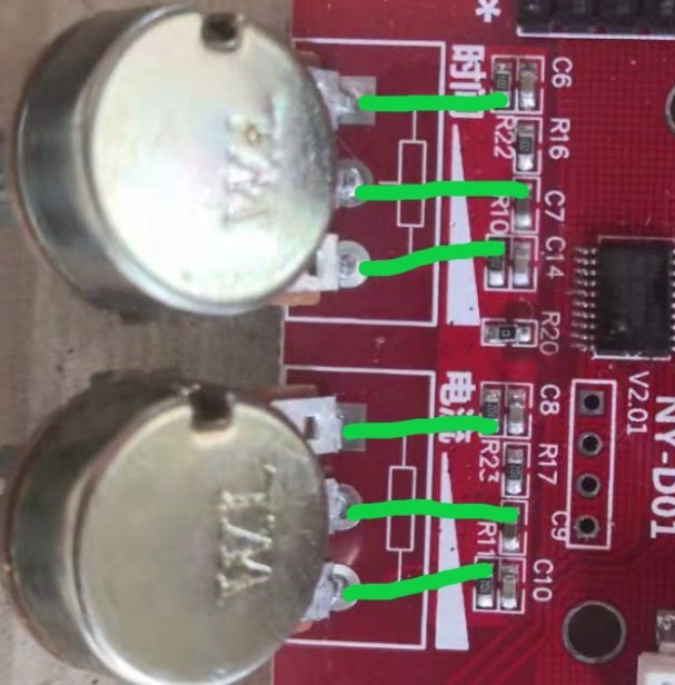 İlk önce potentiometer metrenin 3 piminin her birinin üzerindeki pedine bakın.