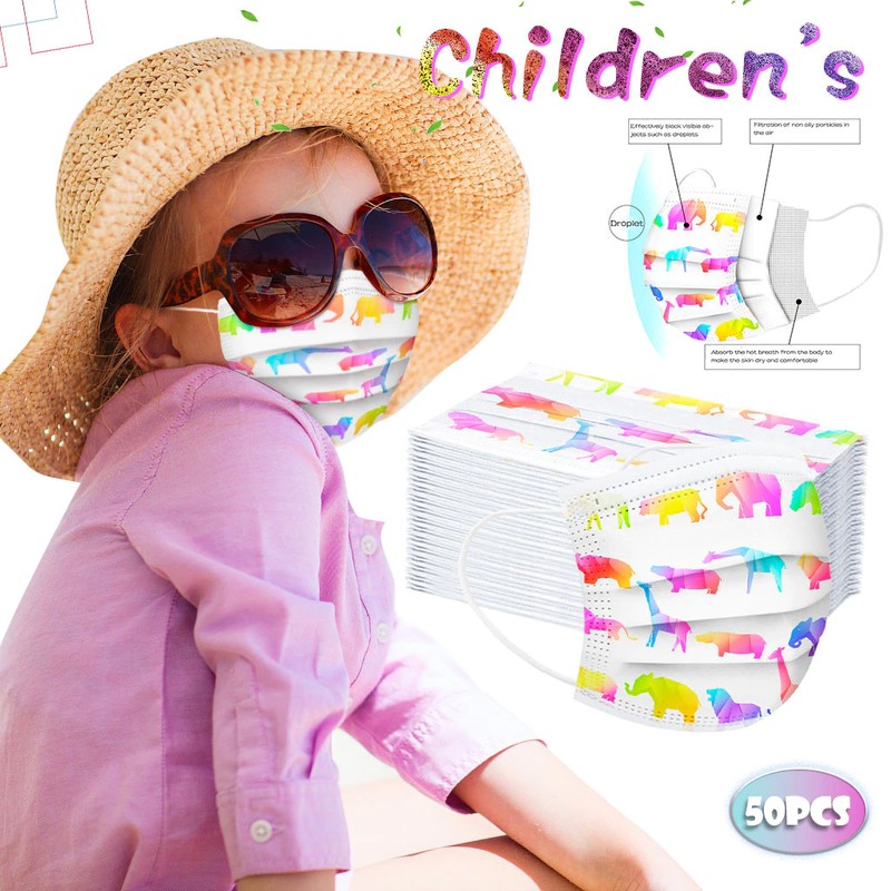 50 Adet/Kutu Çocuk Karikatür Baskı Tek Kullanımlık Maske 3 Katmanlı Çocuk Çocuklar Filtre Hijyen Kalınlaşmak Yüz Maskesi Earloop Ağız Maskesi
