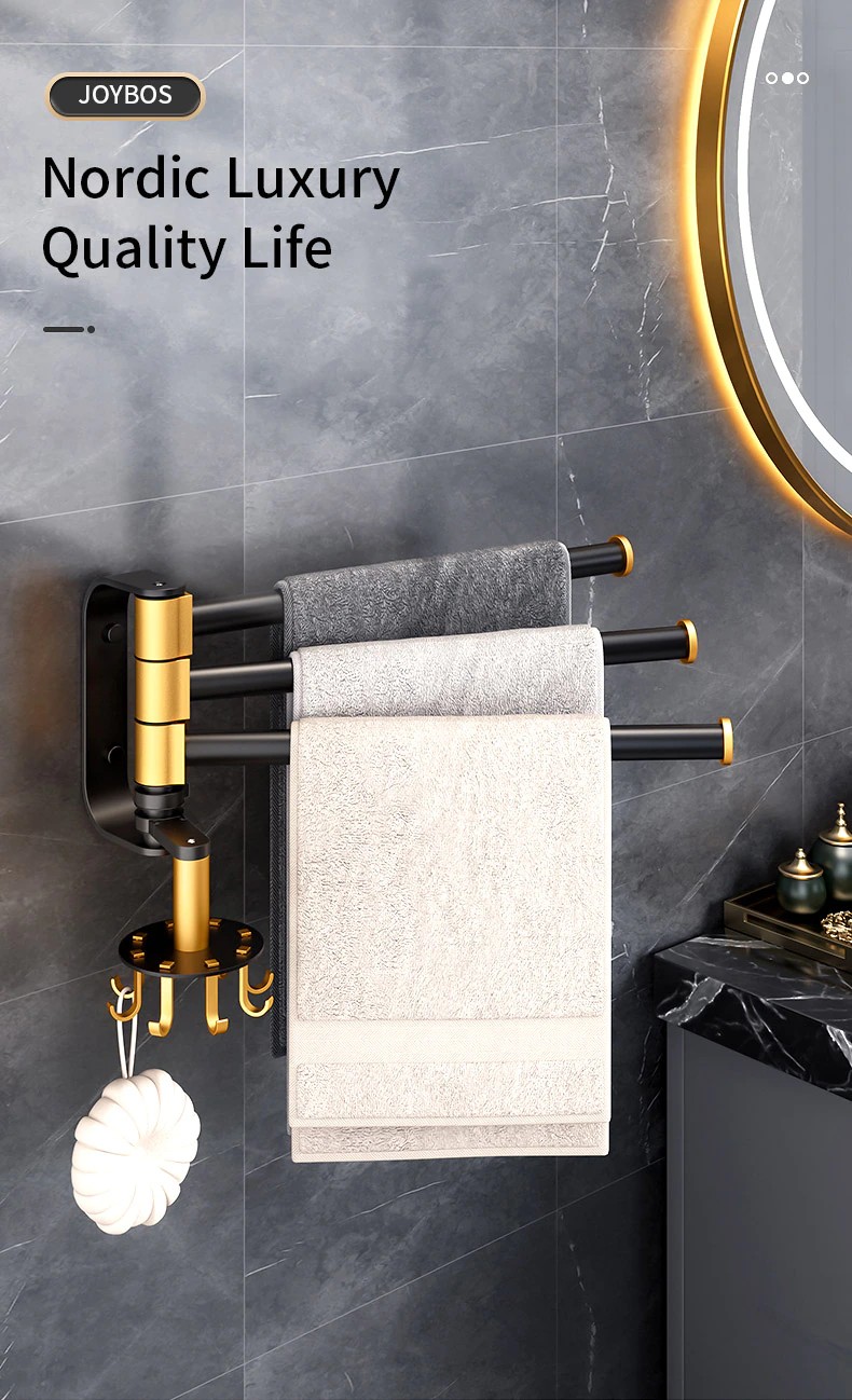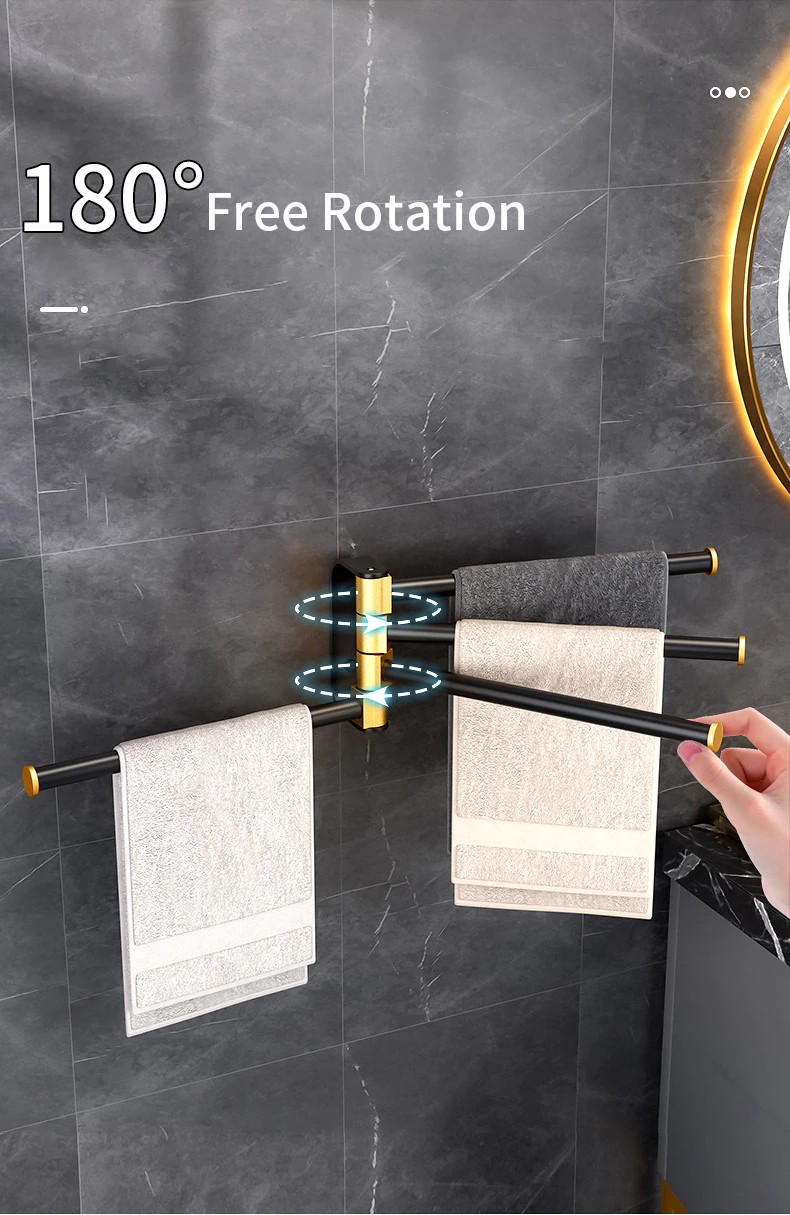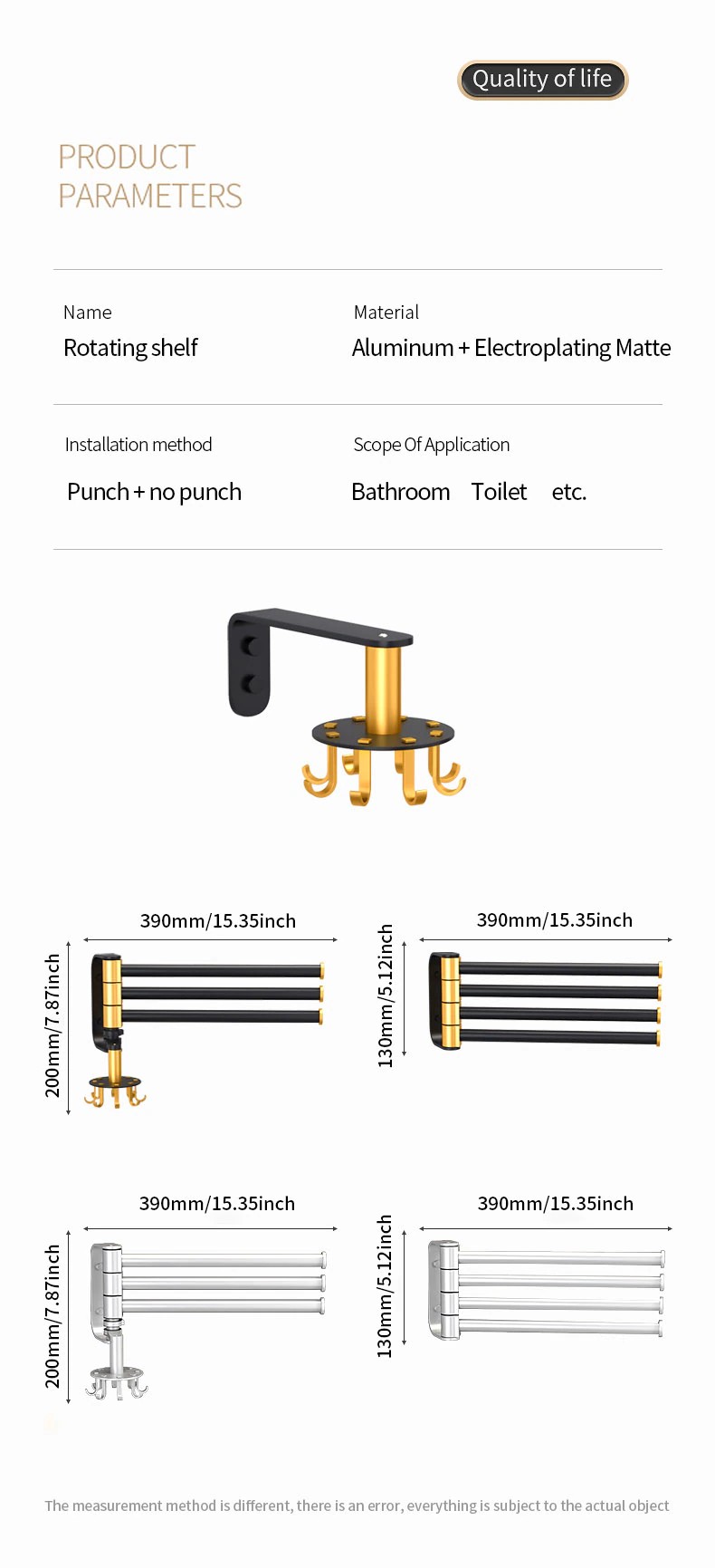 Banyo Havlu Askısı Punch-Ücretsiz Dönen Havlu Tutucu Duş Raf Alüminyum Banyo Havlu Depolama Raf Banyo Ev Düzenleyici