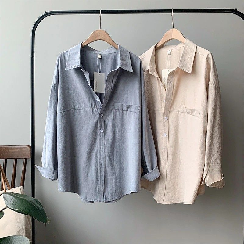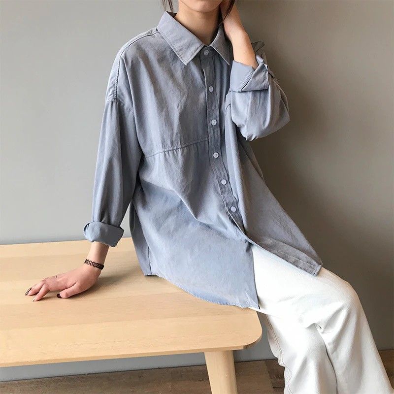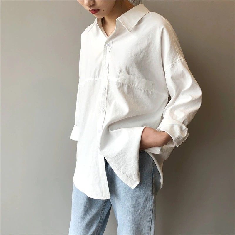 Bgteever minimalist Gevşek Beyaz Gömlek Kadınlar Için Turn-Aşağı Yaka Düz Kadın Gömlek Tops En sonuncu Ilkbahar Yaz Bluz