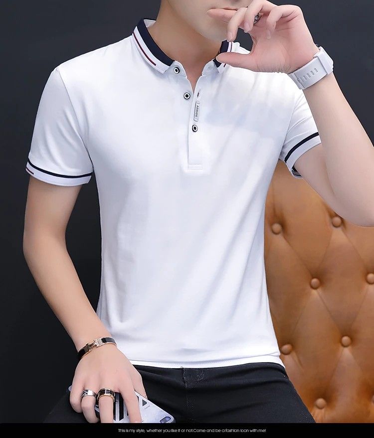 Kahverengi en yeni Yaz Rahat Polo Gömlek Erkekler Kısa Kollu Dönüş Down Yaka Slim Fit Düz Renk Polo Gömlek Erkekler Artı Boyutu Için