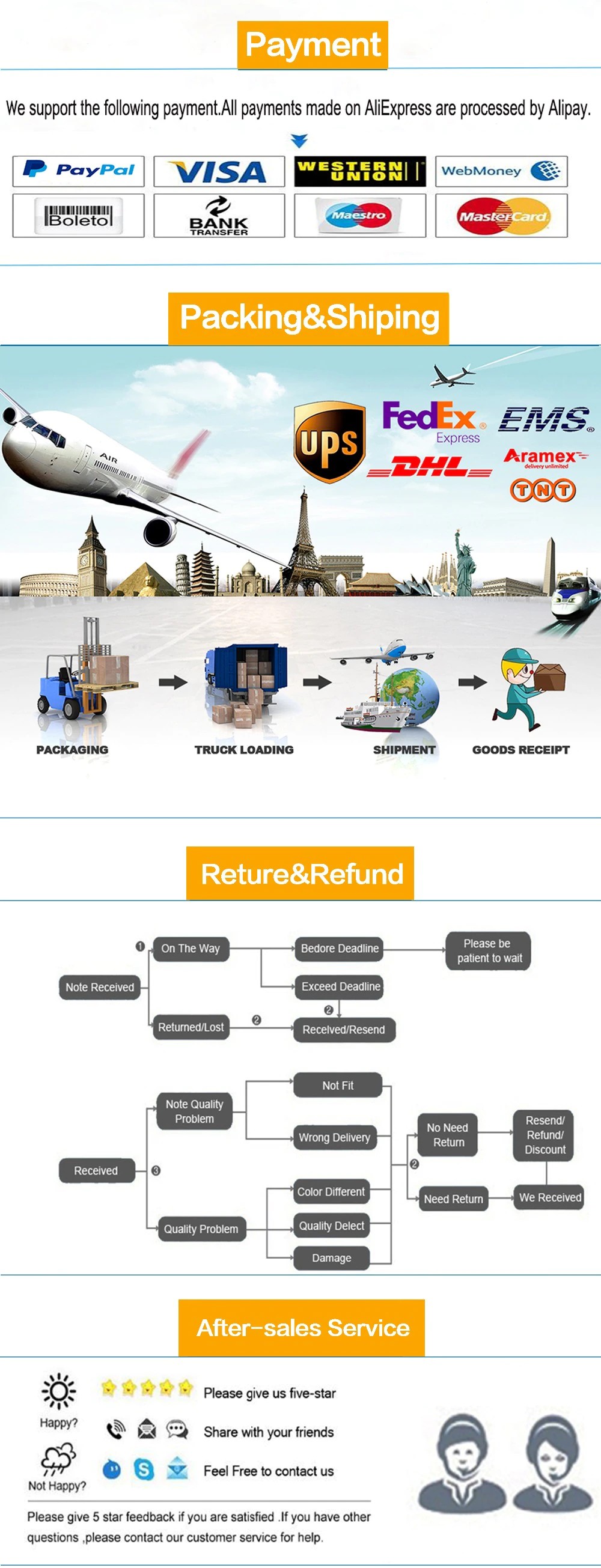 * Satış sonrası hizmet güven verici: mükemmel kaliteye sahibiz. Aldığınız ürünün herhangi bir kalite sorunu varsa, lütfen satış sonrası personelimizle zamanında iletişime geçin ve size iyi niyetle hizmet edeceğiz.