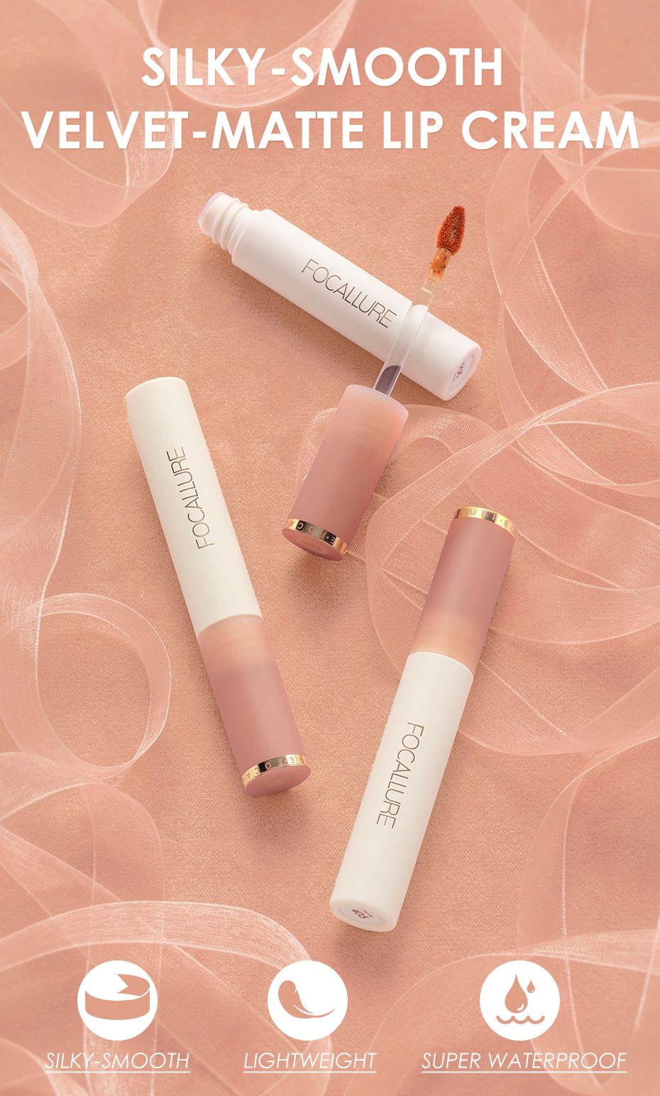 FOCALLURE kadife mat ruj dudak parlatıcısı sıvı dudak tonu krem Pigment uzun ömürlü ipeksi doku dudaklar için kadın kozmetik