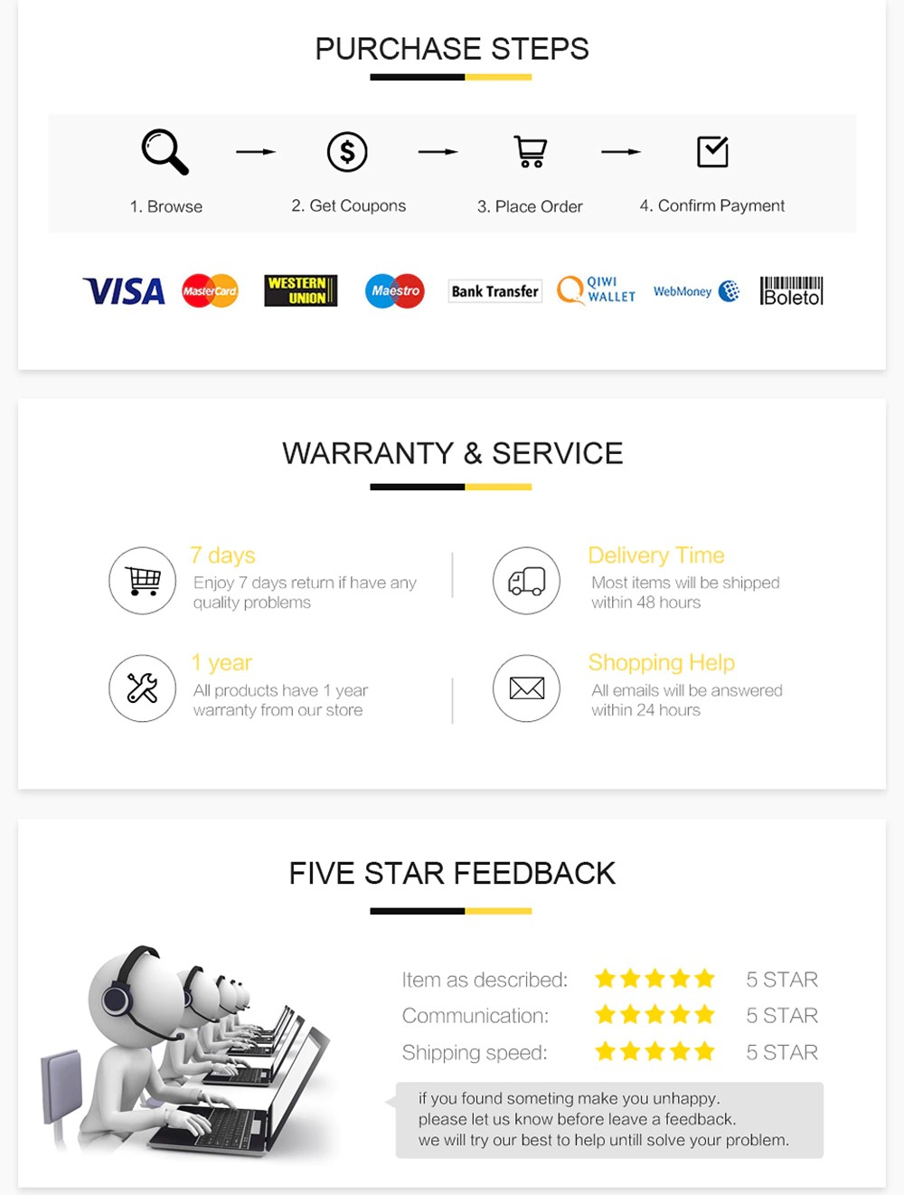 Sipariş verdikten sonra, malları hemen göndeririz. Platformda en hızlı teslimatı yapan satıcıyız ve birçok müşterinin onayını aldık