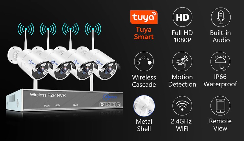 Movols H.265 Kablosuz Cctv Sistemi 8Ch 1080P Tuya Nvr 2Mp Açık Su Geçirmez Wifi Ip Güvenlik Kamera Ses Video Gözetim Kiti