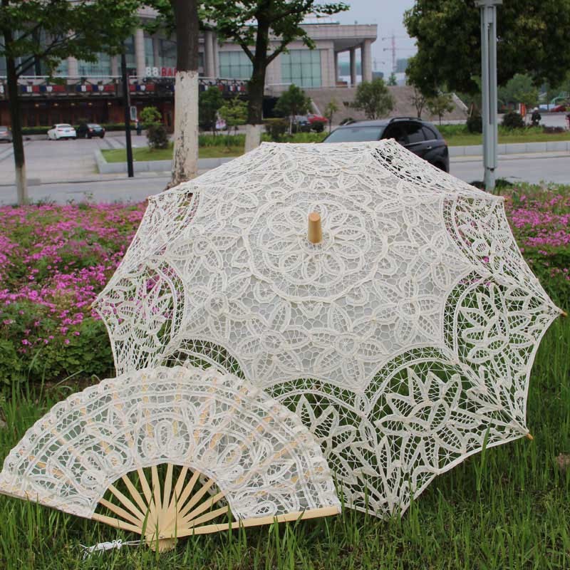 El yapımı işlemeli dantel şemsiye güneş şemsiyesi + dantel Fan gelin düğün doğum günü partisi dekorasyon