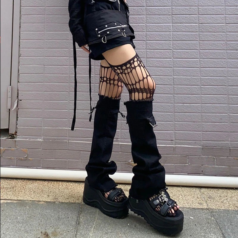 Japon Harajuku Içi Boş File Çoraplar Tayt Kadın Moda Siyah Gotik Tam Vücut File Çoraplar Külotlu Çorap
