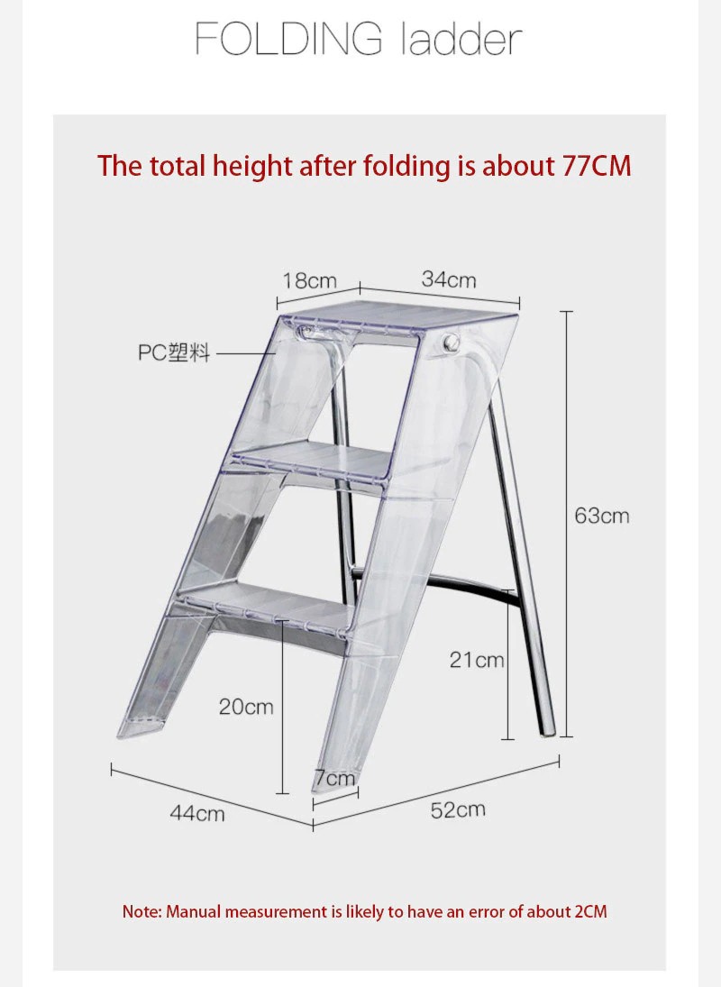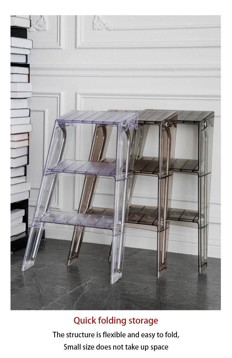 JOYLOVE japon ev merdiveni şeffaf akrilik taşınabilir teleskopik katlanır merdiven depolama üç adım pedalı plastik merdiven