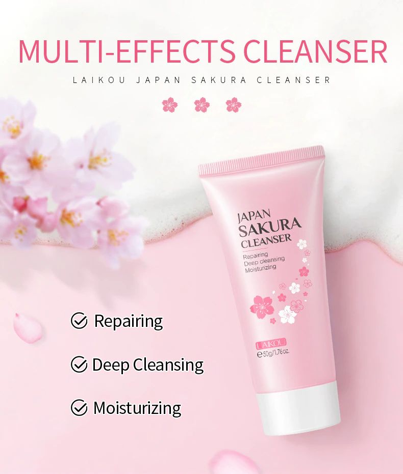 LAlKOU japonya Sakura nazik temizlik yüz temizleyici gözenekleri küçültmek derin temiz yağ kontrolü siyah nokta nemlendirici cilt bakımı kaldırmak