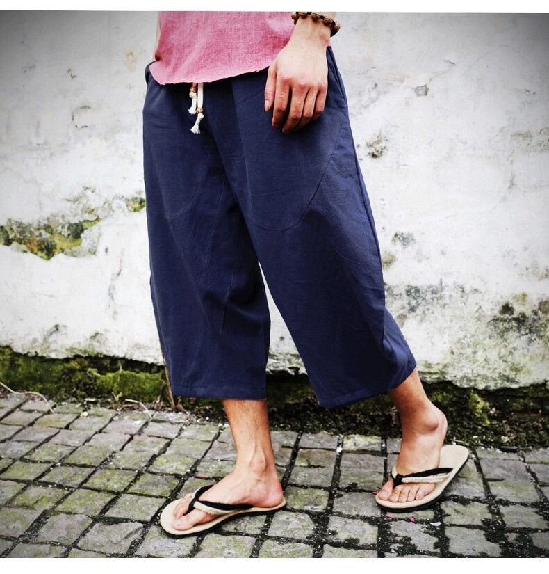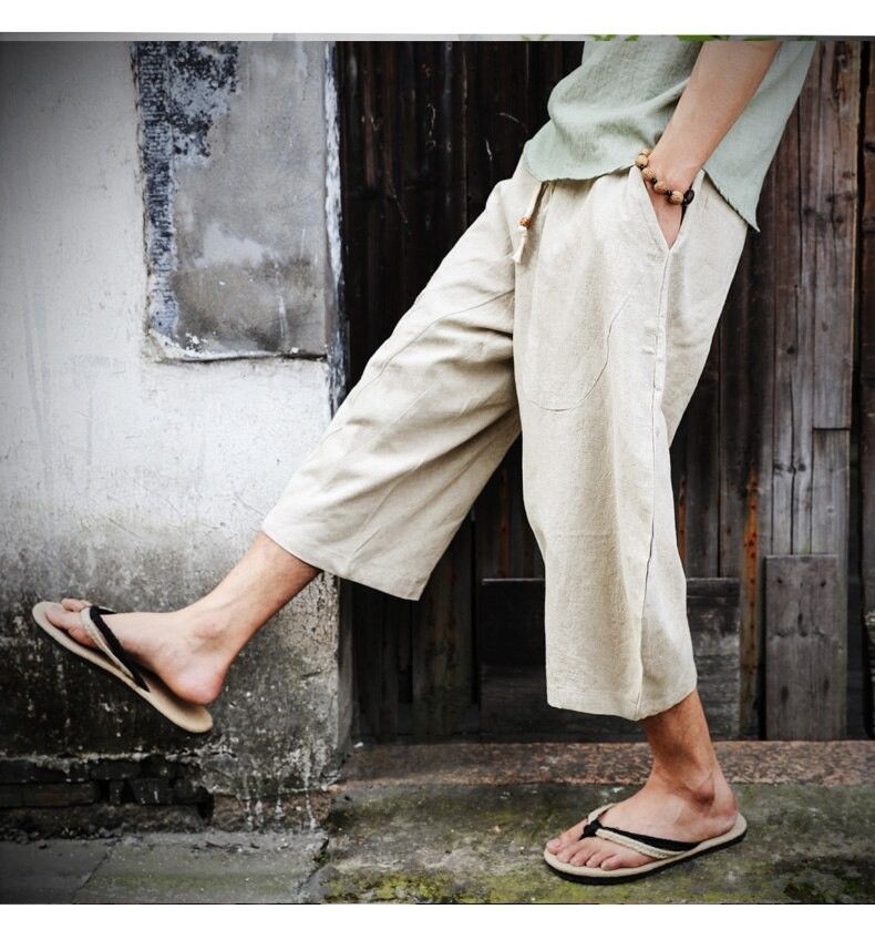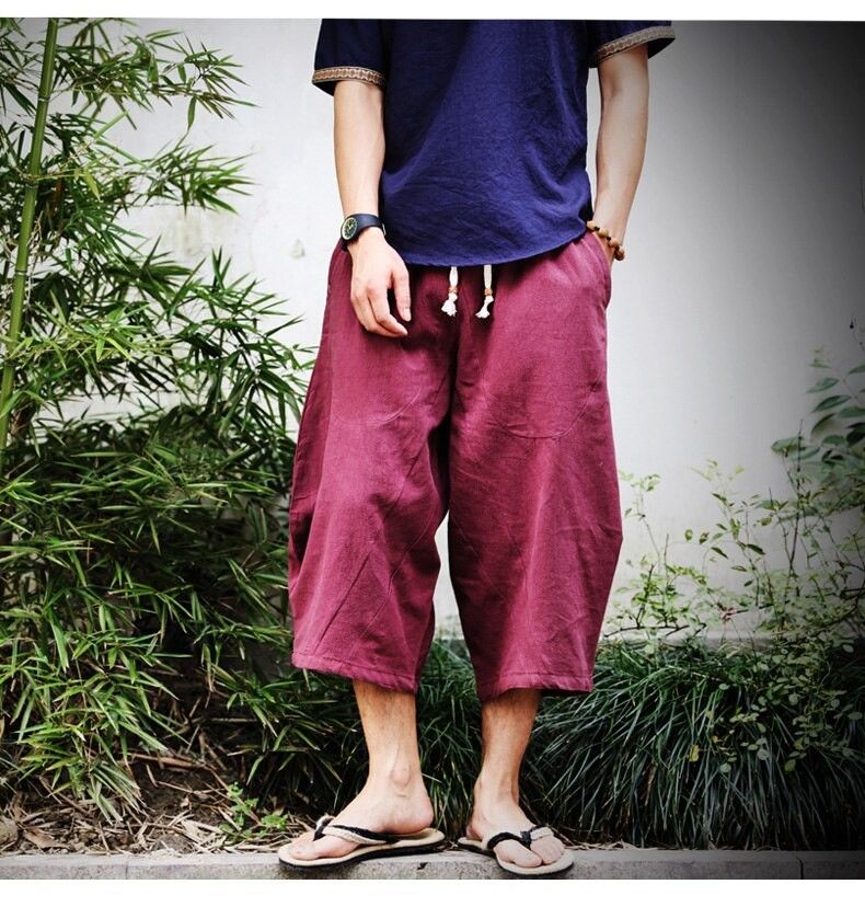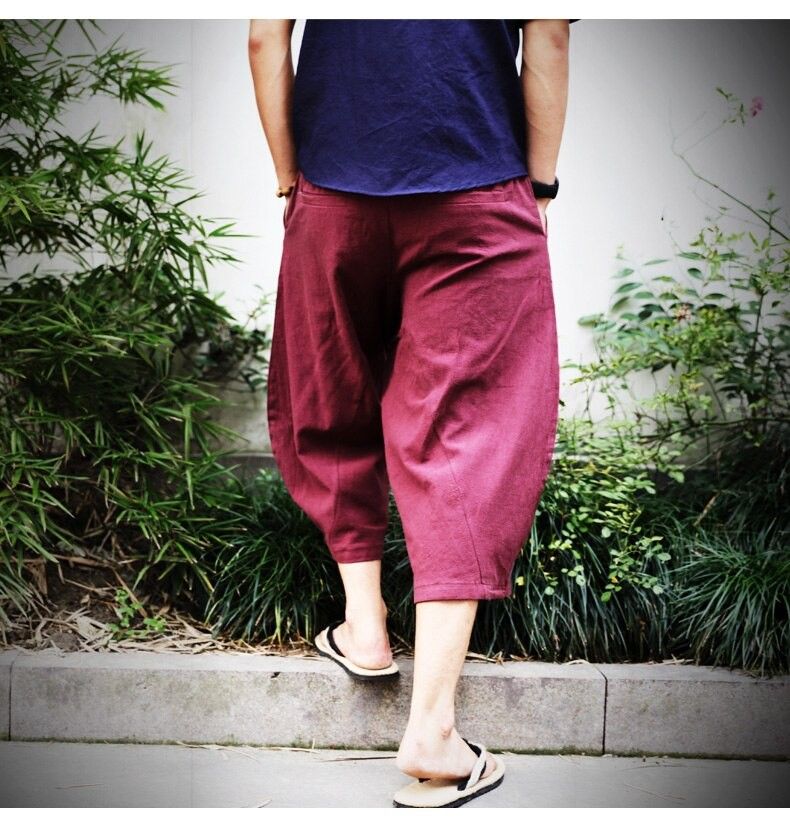 En sonuncu Erkekler Pamuk Keten Baggy Geniş Bacak Pantolon Erkekler Asılı Kasık Hip Hop Olgunlaşanlar Pantolon Erkek Buzağı Uzunlukta Çapraz Pantolon