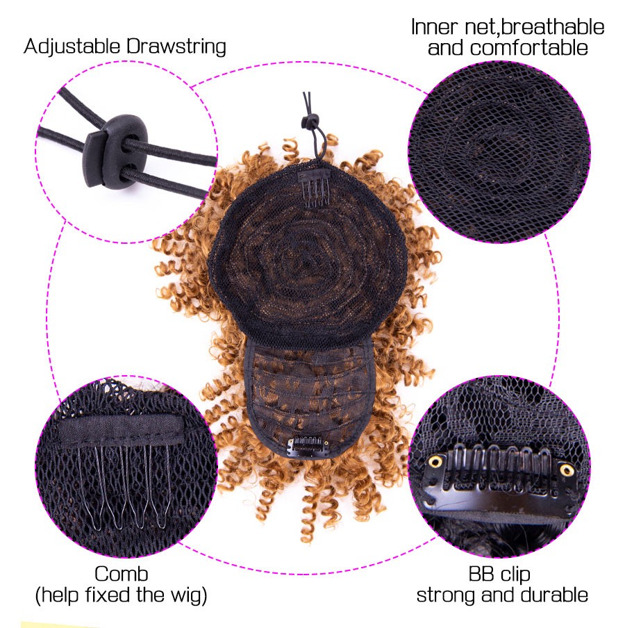 Leeons Sentetik Yeni Kıvırcık Patlama Afro İpli At Kuyruğu 11 Renk Kinky Kıvırcık Saç Patlama Postiş Klipsi Ön Parçaları