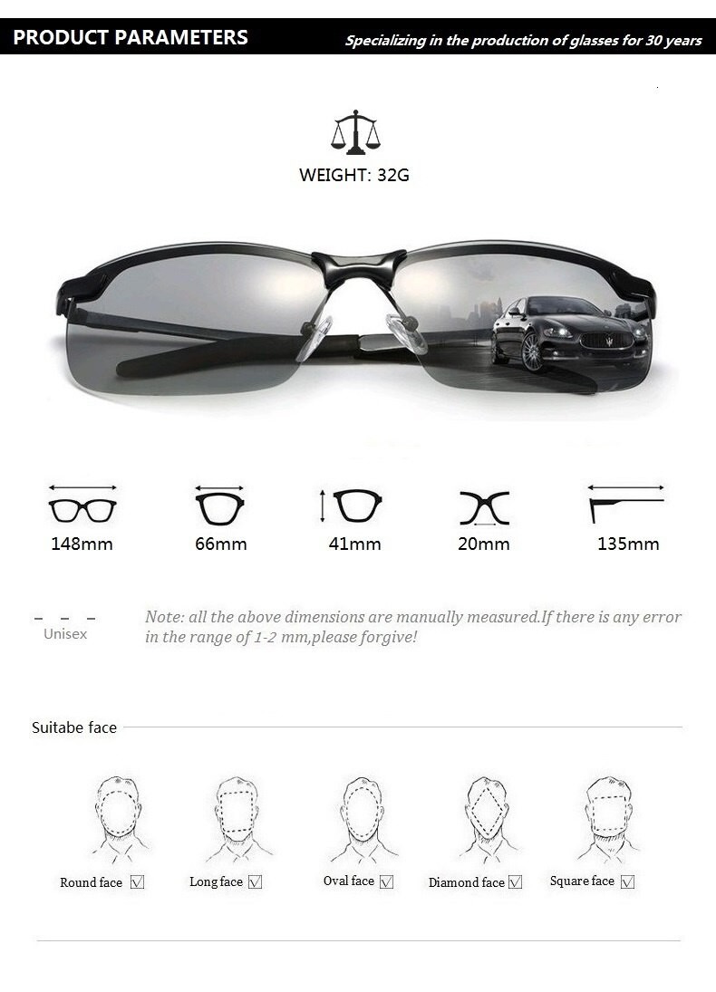 Fotokromik Güneş Gözlüğü Erkekler Polarize Sürüş Bukalemun Gözlük Erkek Renk Değiştiren Güneş Gözlüğü Gündüz Gece Görüş Sürücü Gözlük